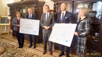 Symboliczne czeki w imieniu Ministra Nauki i Szkolnictwa Wyższego przekazał dziś na ręce Prorektora ds. Kształcenia UMB, prof. dr hab. Adriana Chabowskiego społeczny doradca ministra, poseł Jacek Żalek.