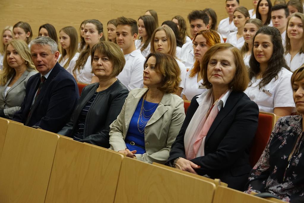 Dr Barbara Bebko, Naczelna Pielęgniarka ze szpitala USK podkreśliła, że decyzja o studiowaniu pielęgniarstwa i położnictwa to doskonały wybór i zachęciła studentów do pracy w szpitalach uniwersyteckich.