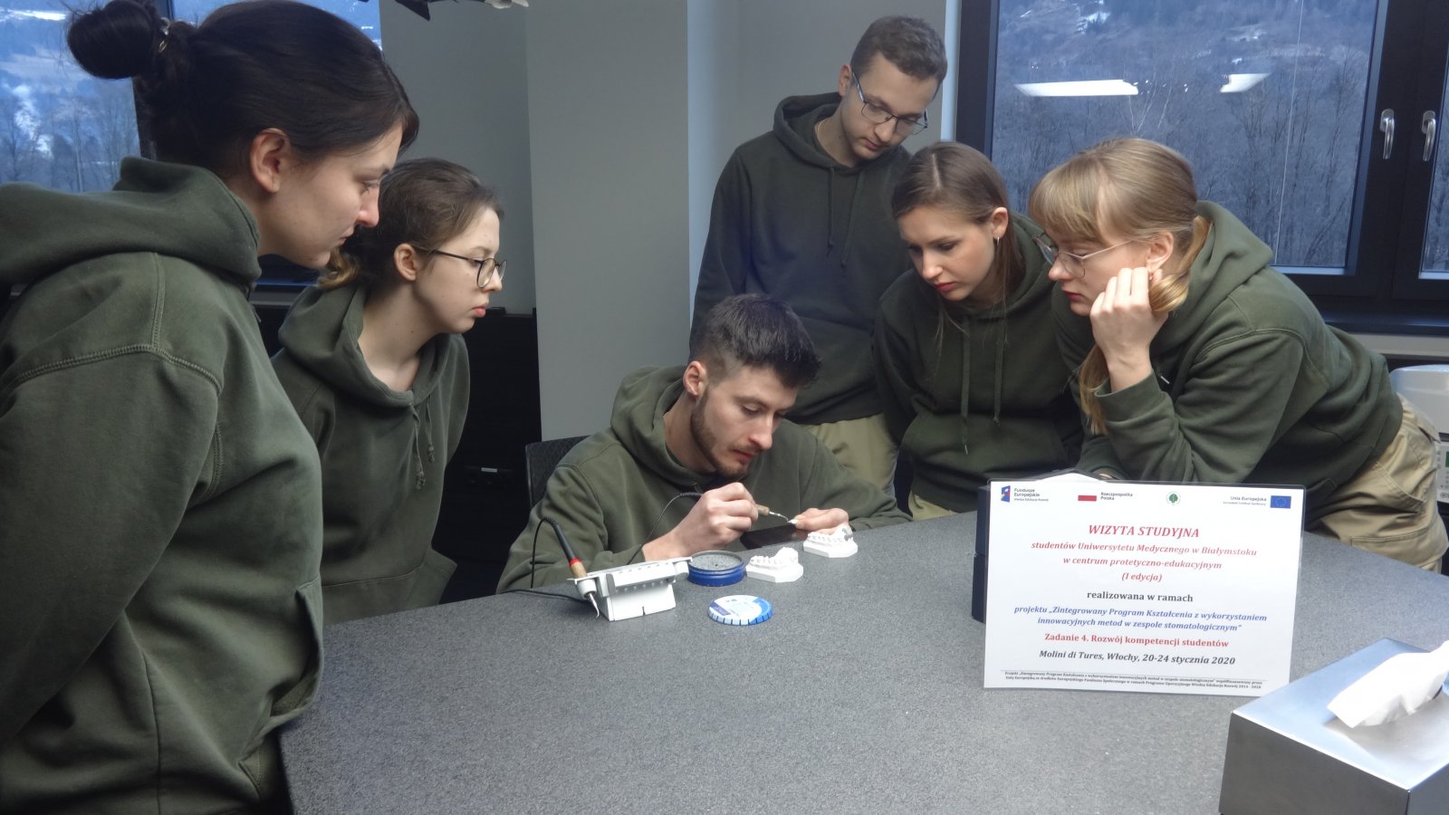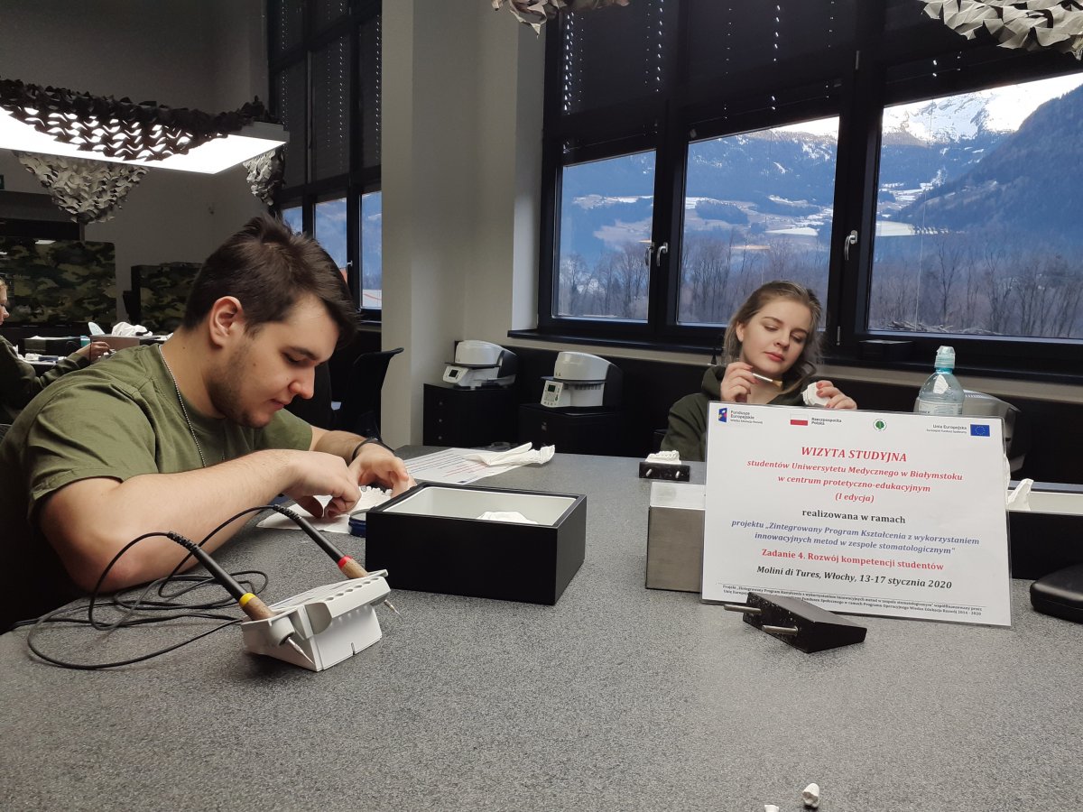 W styczniu 2020r. studenci i studentki III roku kierunku Techniki Dentystyczne oraz V roku kierunku Lekarsko-Dentystycznego wzięli udział w wizycie studyjnej, w centrum protetyczno-edukacyjnym firmy Zirkonzahn w Molini di Tures, we Włoszech. Program wizyty obejmował wykonanie wirtualnych projektów prac protetycznych, które posłużą do zajęć warsztatowych mających na celu nabycie praktycznych umiejętności z zakresu wykonawstwa i realizacji prac protetycznych. Wyjazd studentów UMB został zrealizowany w ramach projektu ,,Zintegrowany Program Kształcenia z wykorzystanie innowacyjnych metod w zespole stomatologicznym" współfinansowanego przez Unię Europejską ze środków Europejskiego Funduszu Społecznego w ramach POWER 2014-2020. Opiekunami grup były Pani mgr Anna Kropiwnicka oraz Pani mgr Agnieszka Maleszkiewicz. Do tej pory odbyły się dwie z czterech zaplanowanych w tym roku wizyt studyjnych. Pozostałe dwie odbędą się w maju. Zagraniczne wizyty studyjne zostały również zaplanowane w kolejnych trzech latach realizacji projektu, dla blisko 120 osób.