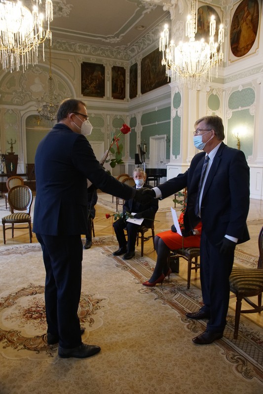 Rektor prof. dr hab. Adam Krętowski wręczył dyplomy za całokształt dorobku naukowcom, którzy wiele lat pracowali w Uniwersytecie Medycznym w Białymstoku. Uroczystość odbyła się 22 grudnia w Aula Magna w Pałacu Branickich.