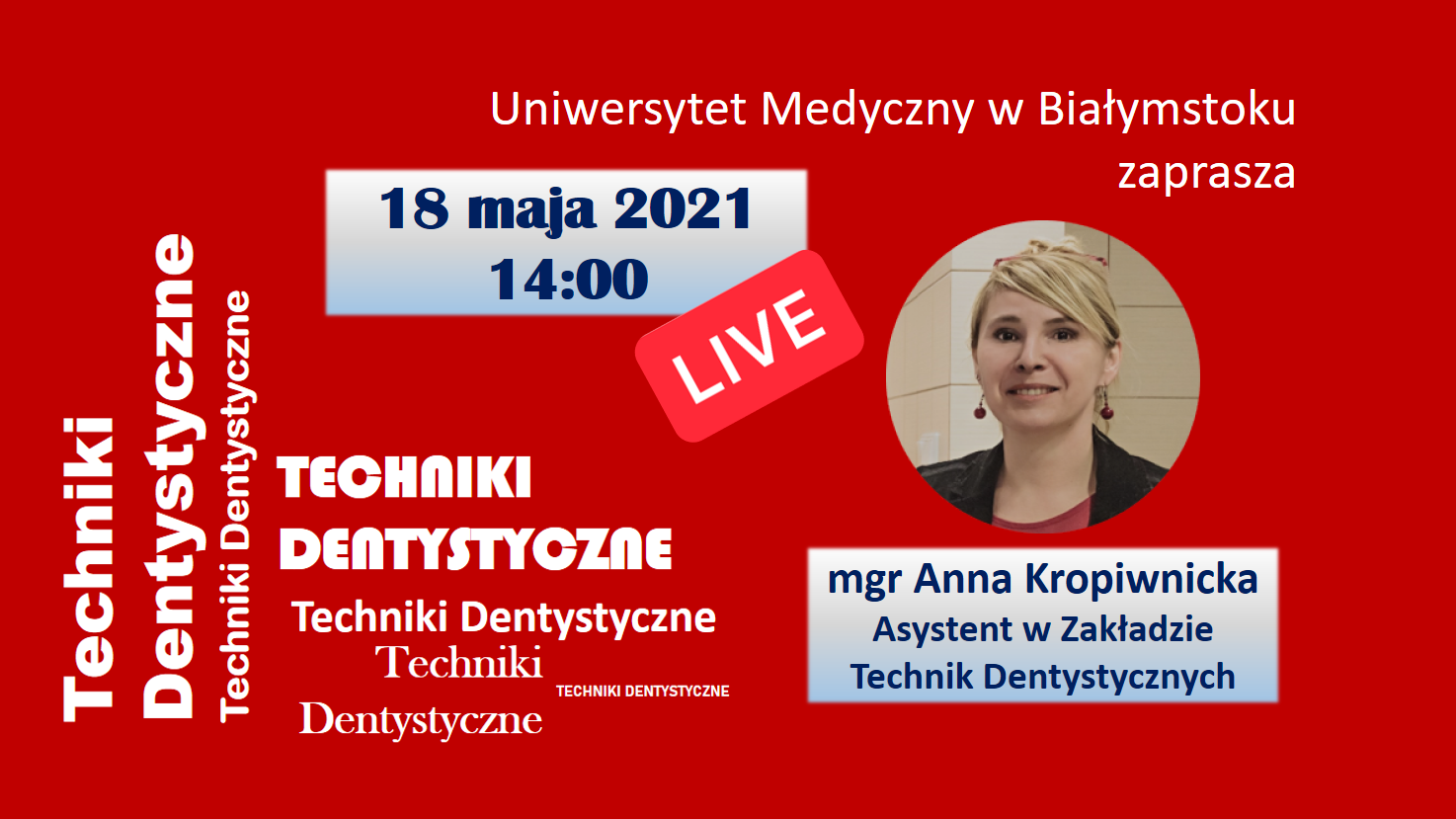 Zapraszamy na spotkanie z mgr Anną Kropiwnicką, asystentem w Zakładzie Technik Dentystycznych dotyczące studiów na kierunku techniki dentystyczne.