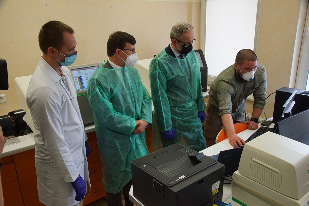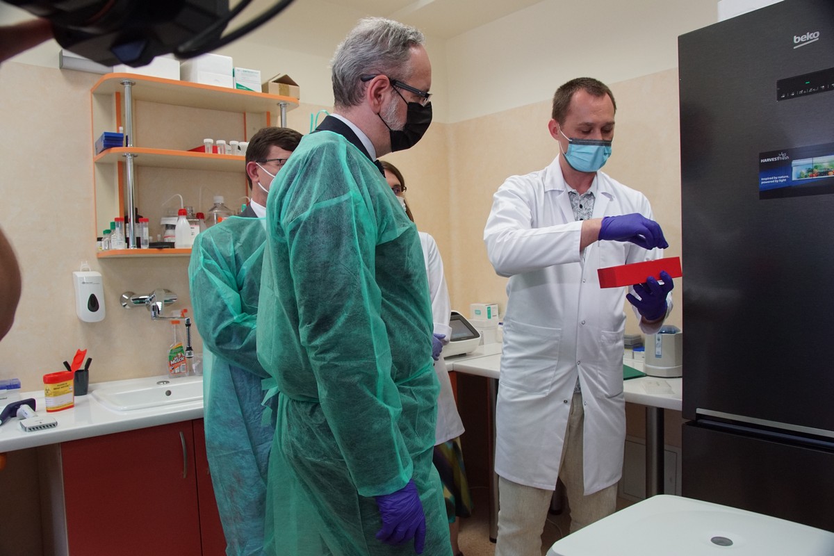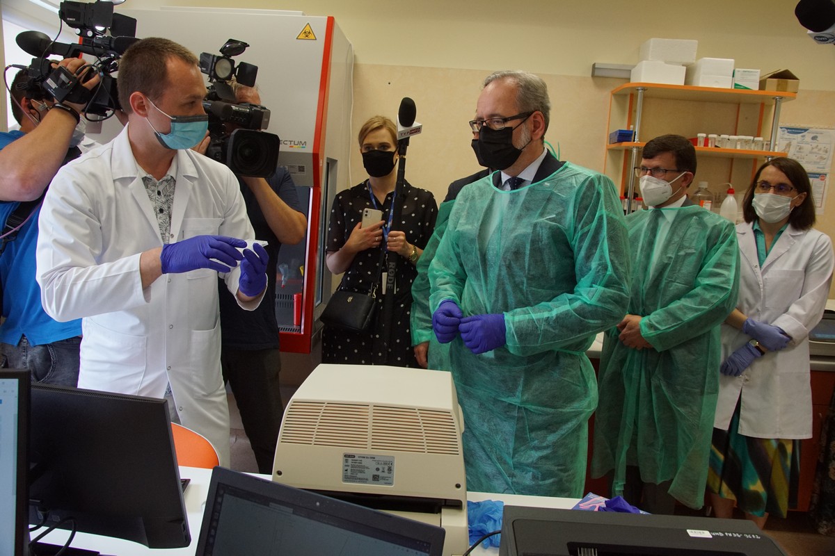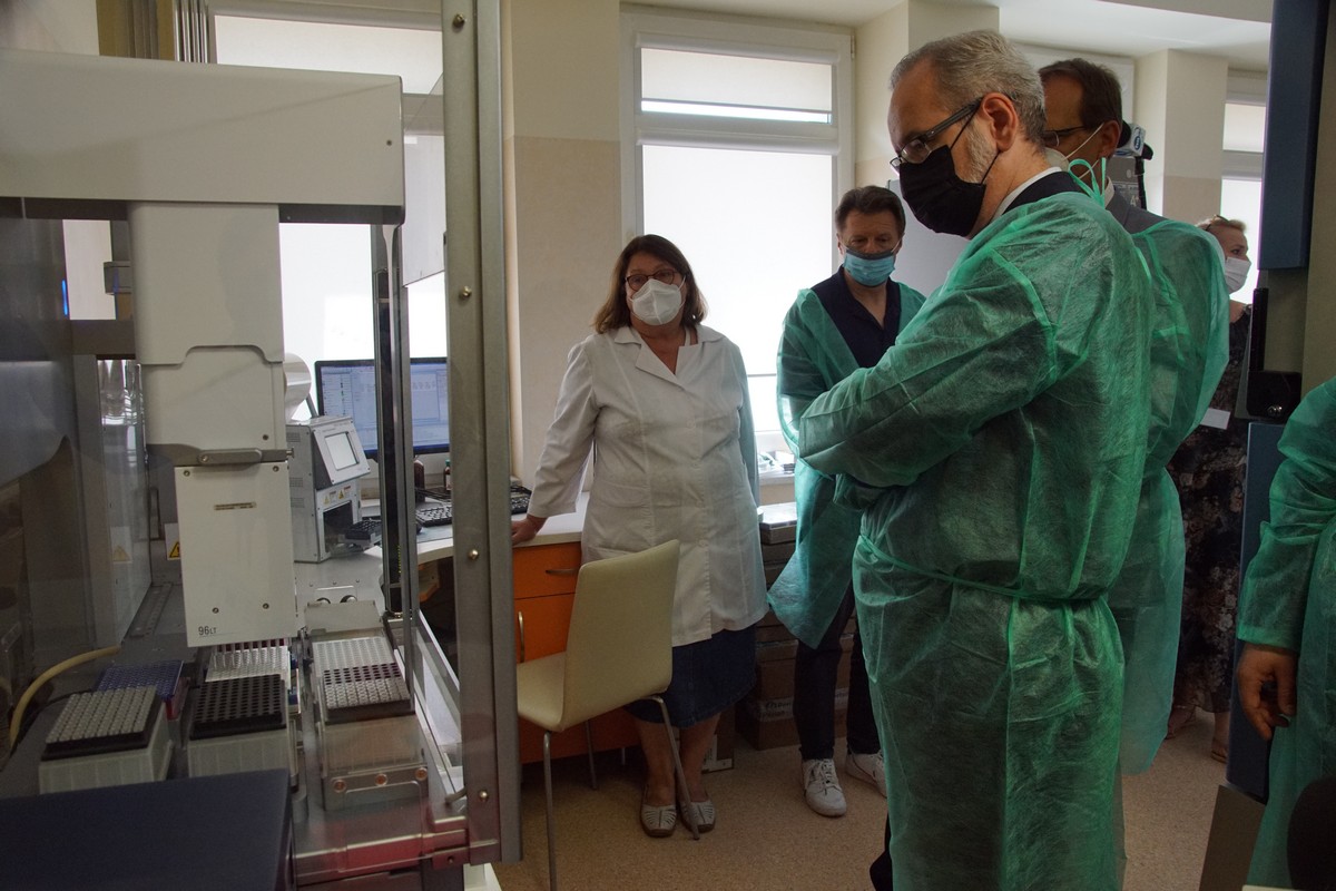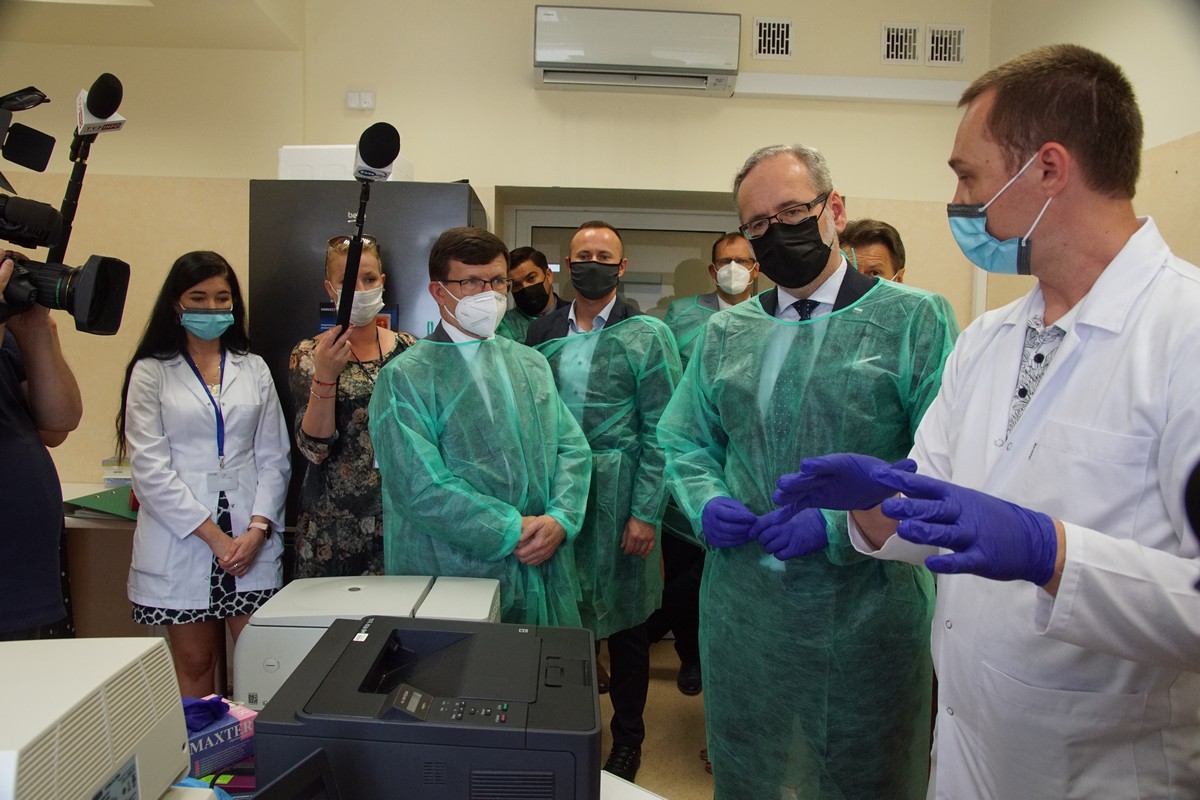 Minister zapoznał się także z pracą Akademickiego Ośrodka Diagnostyki Patomorfologicznej i Genetyczno-Molekularnej, gdzie m.in. sekwencjonowany jest wirus SARS-COV-2. Wyraził uznanie dla całego zespołu i podziękował za ich ciężką pracę na rzecz walki z pandemią. Następnie odwiedził Uniwersytecki Szpital Kliniczny.