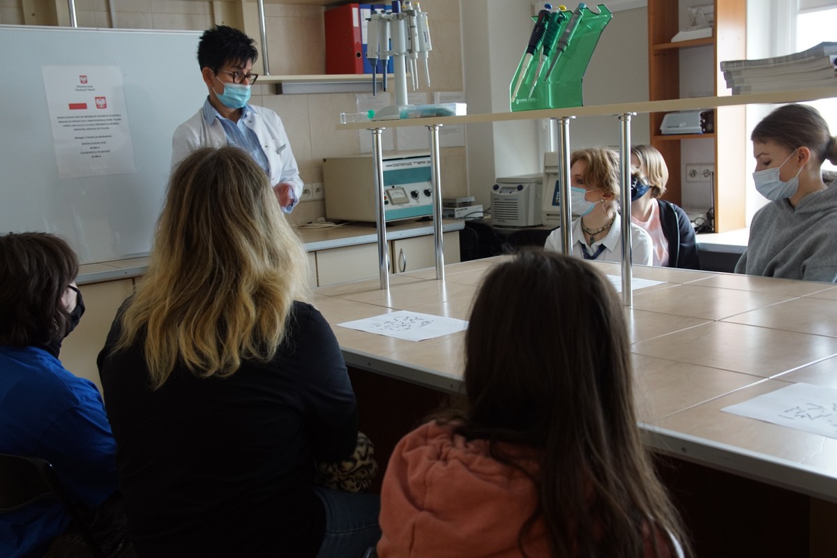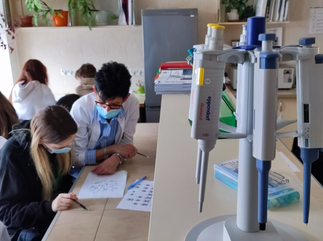 Genetyka, to jedna z dziedzin nauki, która uczniom szkół średnich sprawia najwięcej problemów. Dlatego też dzisiejsze konsultacje w ramach Projektu Biologia i chemia po akademicku cieszyły się dużą popularnością. Poprowadziły je dr Renata Posmyk i dr Beata Stasiewicz-Jarocka z Zakładu Genetyki Klinicznej. W trakcie pierwszej części spotkania młodzież zapoznała się z metodami pozyskiwania chromosomów, technikami cytogenetycznymi.