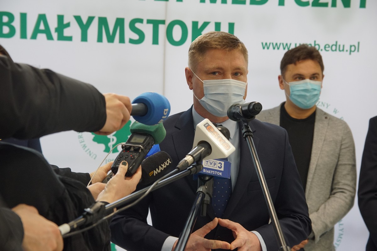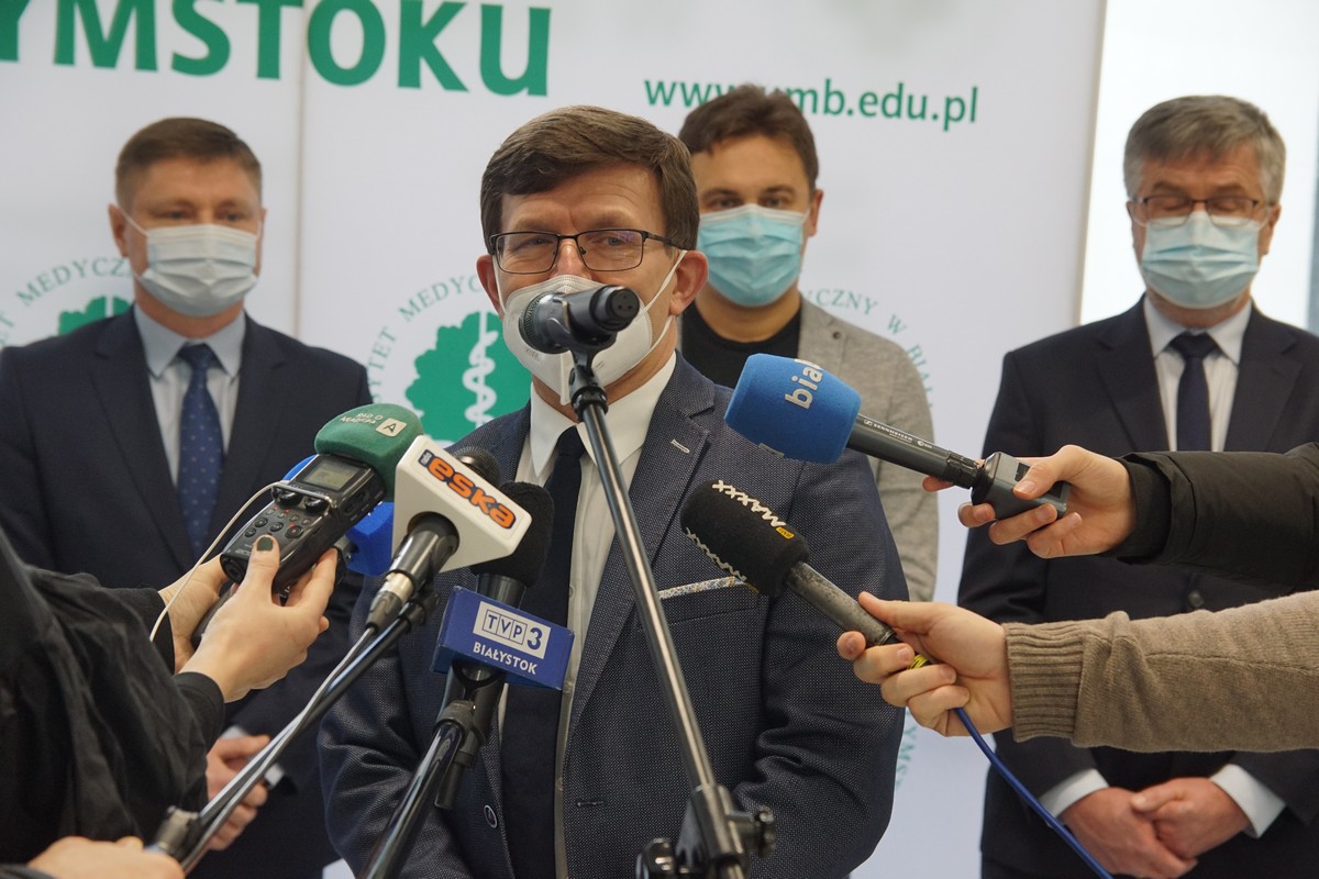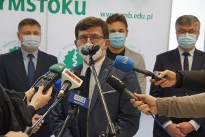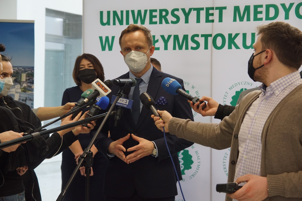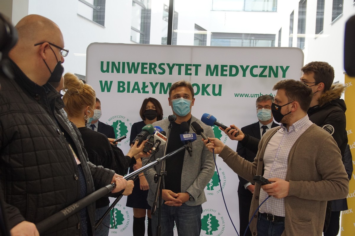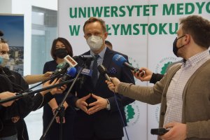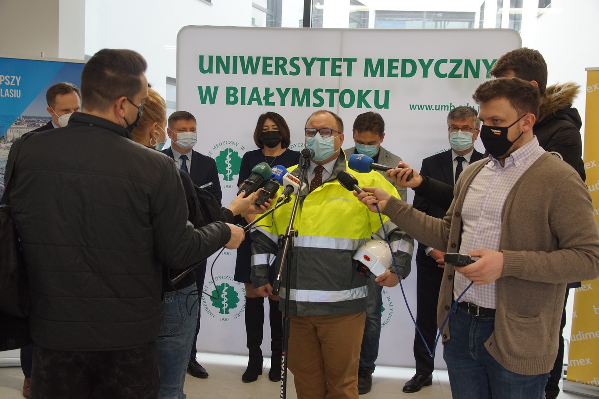 Władze rektorskie Uniwersytetu Medycznego w Białymstoku, wicemarszałek Województwa Podlaskiego oraz dyrektorzy Uniwersyteckich Szpitali Klinicznych pokazali mediom powstające Centrum Psychiatrii.