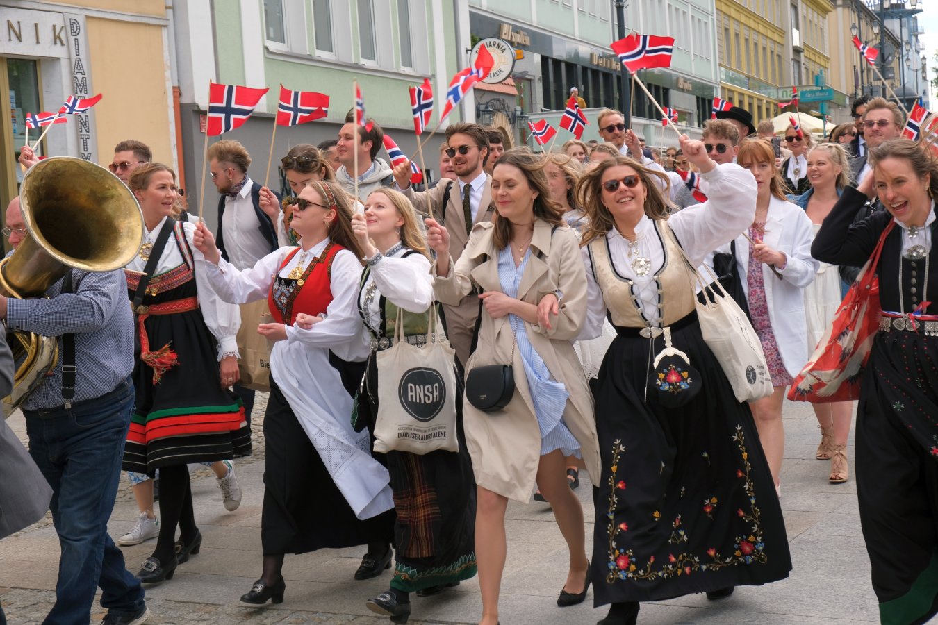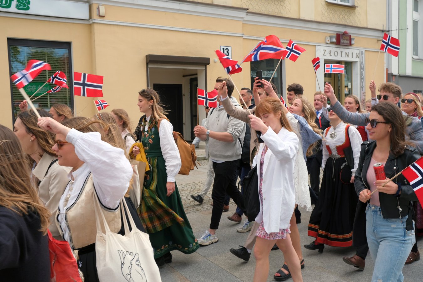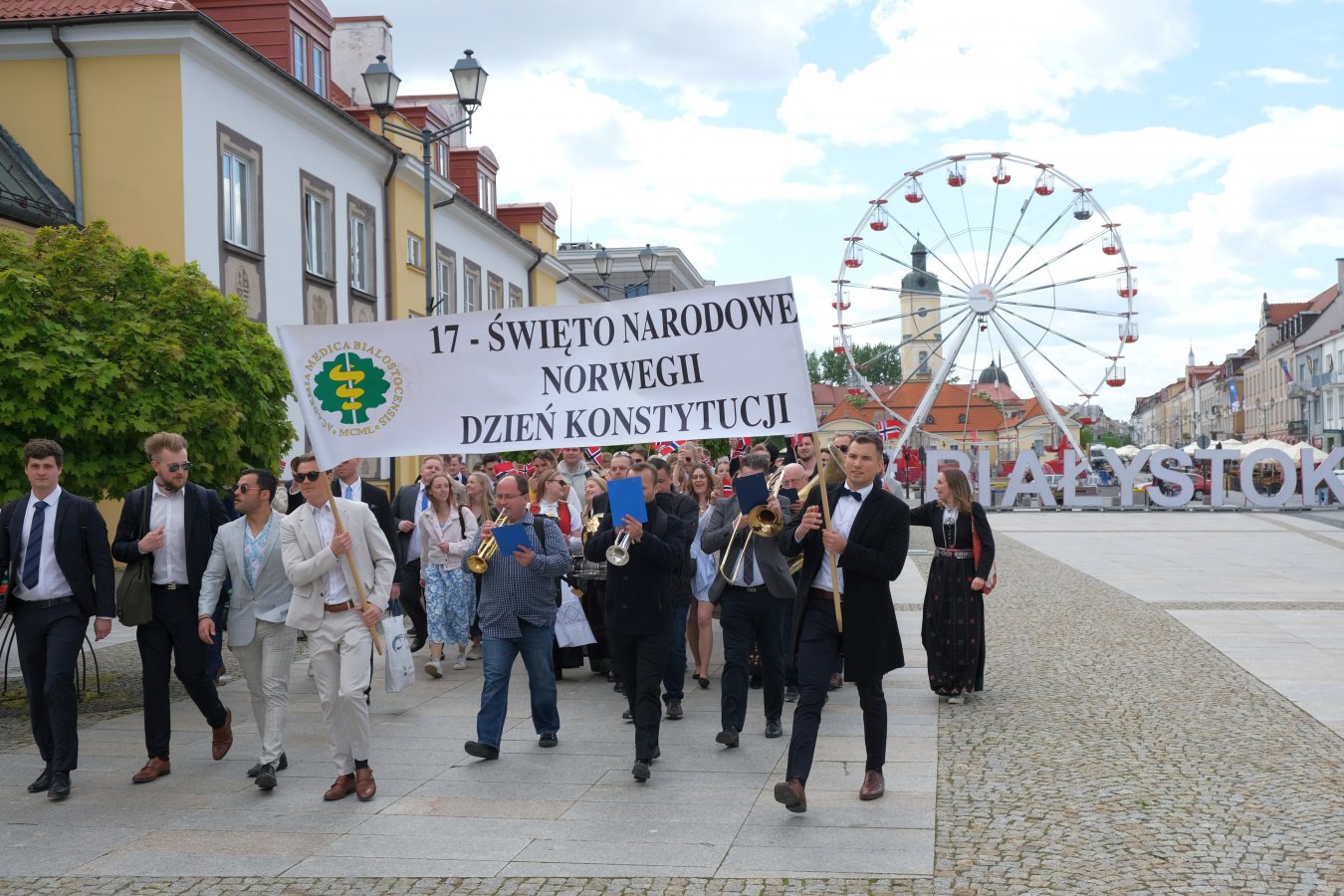 Norwescy studenci Uniwersytetu Medycznego w Białymstoku 17 maja hucznie obchodzą norweskie święto Konstytucji. W Norwegii dzień ten jest spędzany na piknikach, przemarszach i wspólnych imprezach. Dlatego też studenci UMB ubrani w stroje narodowe wyruszyli o 14.00 sprzed Opery i Filharmonii Podlaskiej i przemaszerowali do Pałacu Branickich, siedziby Uczelni. Wszystko odbywało się w radosnej atmosferze przy dźwiękach trąbek oraz pieśni patriotycznych.