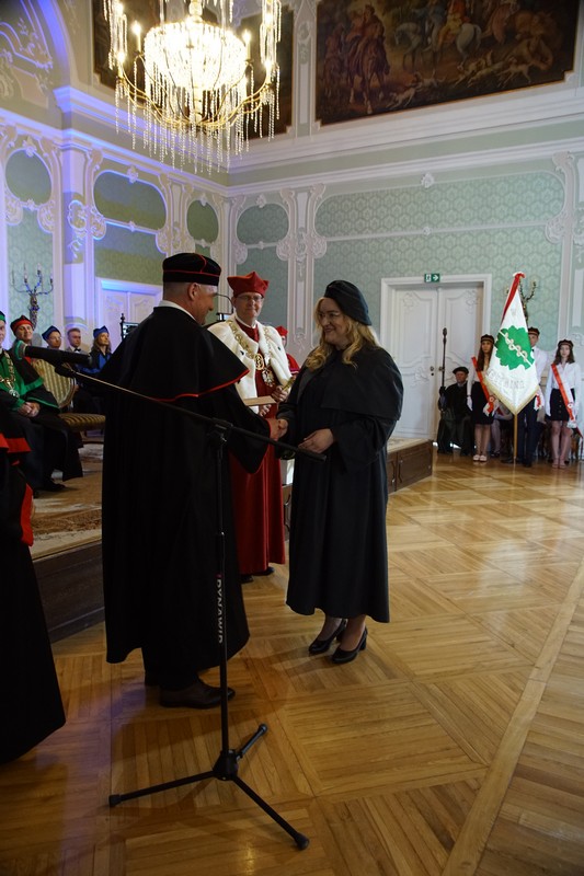 W uroczystości oprócz Senatorów wzięli także udział Dziekani 3 Wydziałów UMB, którzy wręczali dyplomy doktorom i doktorom habilitowanym. W imieniu promowanych głos zabrała dr hab. Jolanta Sawicka- Powierza. Dziękowała władzom Uczelni, promotorom i pracownikom administracji za dobra współpracę, opiekę i życzliwą atmosferę. W wyrazie uznania przytoczyła również słowa A. Einsteina: „Wielkim kunsztem wykazuje się nauczyciel, który potrafi sprawić, że twórcze wyrażanie siebie i nabywanie wiedzy staje się źródłem radości”.