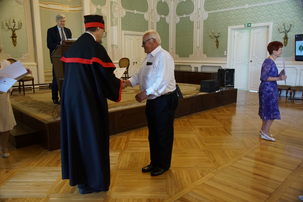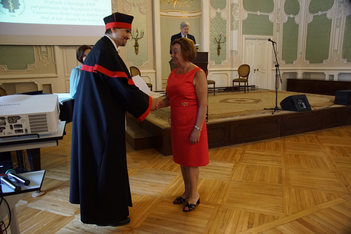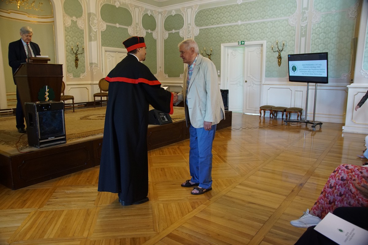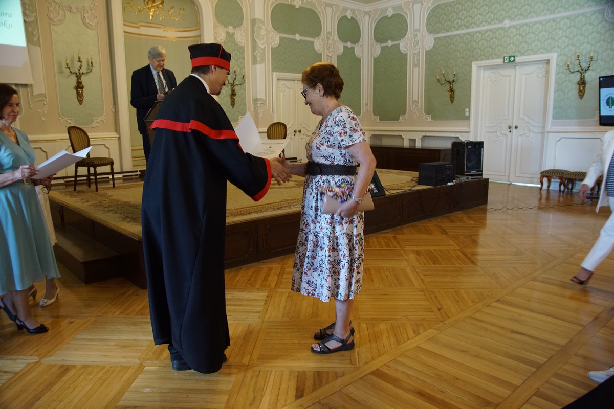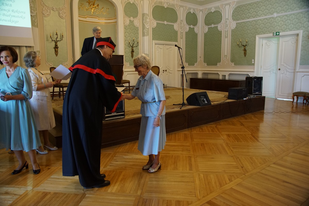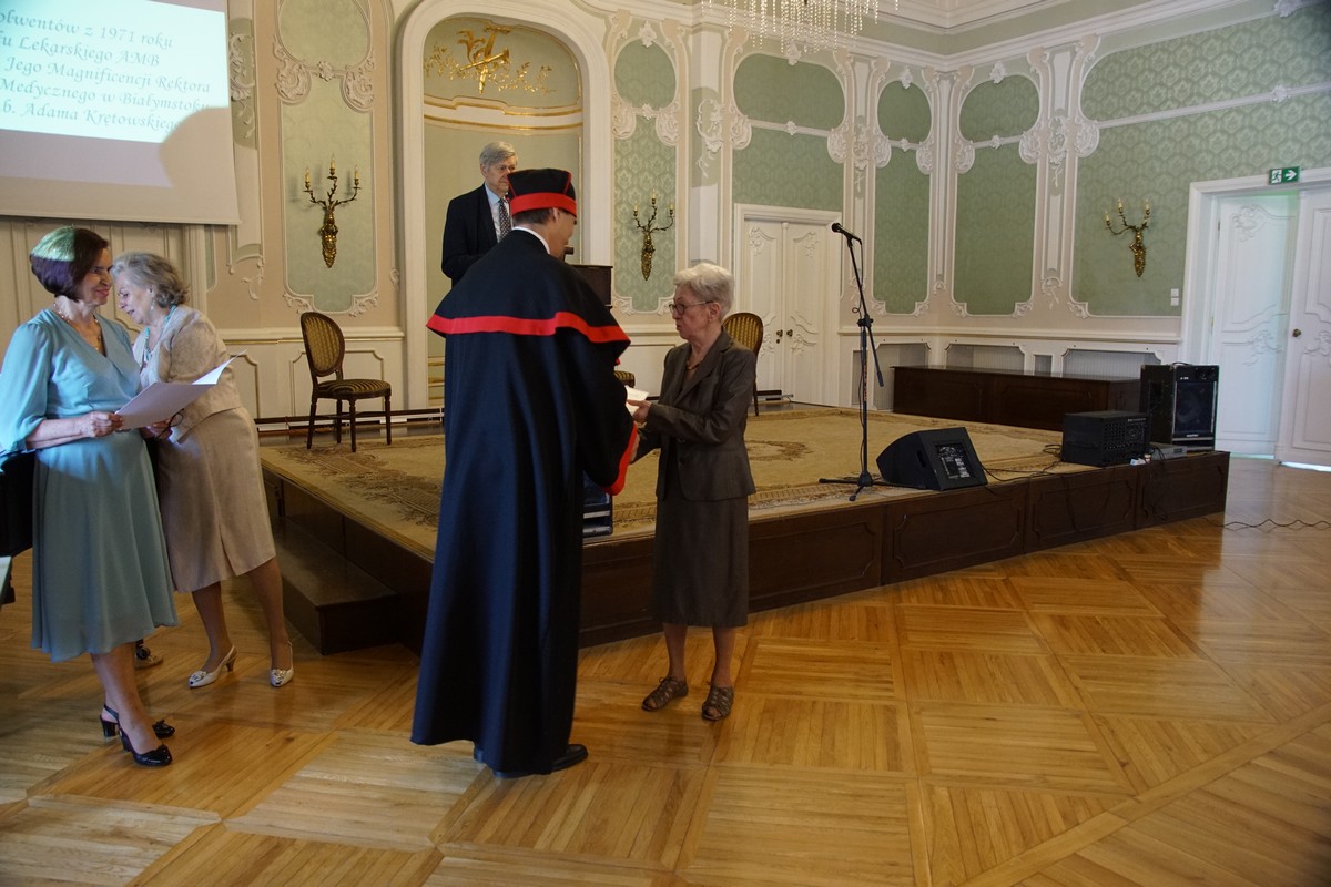 W Aula Magna Uniwersytetu Medycznego w Białymstoku, 25 czerwca 2022 roku odbyło się uroczyste odnowienie dyplomów lekarzy, którzy ukończyli naszą Ama Mater w 1971 roku. W uroczystości wzięli udział: prof. dr hab. Marcin Moniuszko, Prorektor ds. Nauki i Rozwoju oraz prof. dr hab. Karol Kamiński, Prodziekan ds. Ewaluacji i Nauki Wydziału Lekarskiego z Oddziałem Stomatologii i Oddziałem Nauczania w Języku Angielskim. Ponad 80 lekarzy, którzy wzięli udział w Zjeździe otrzymało dyplomy okolicznościowe.