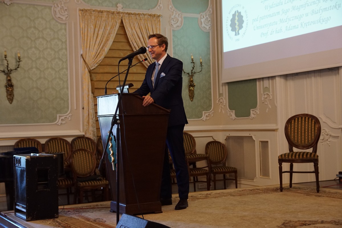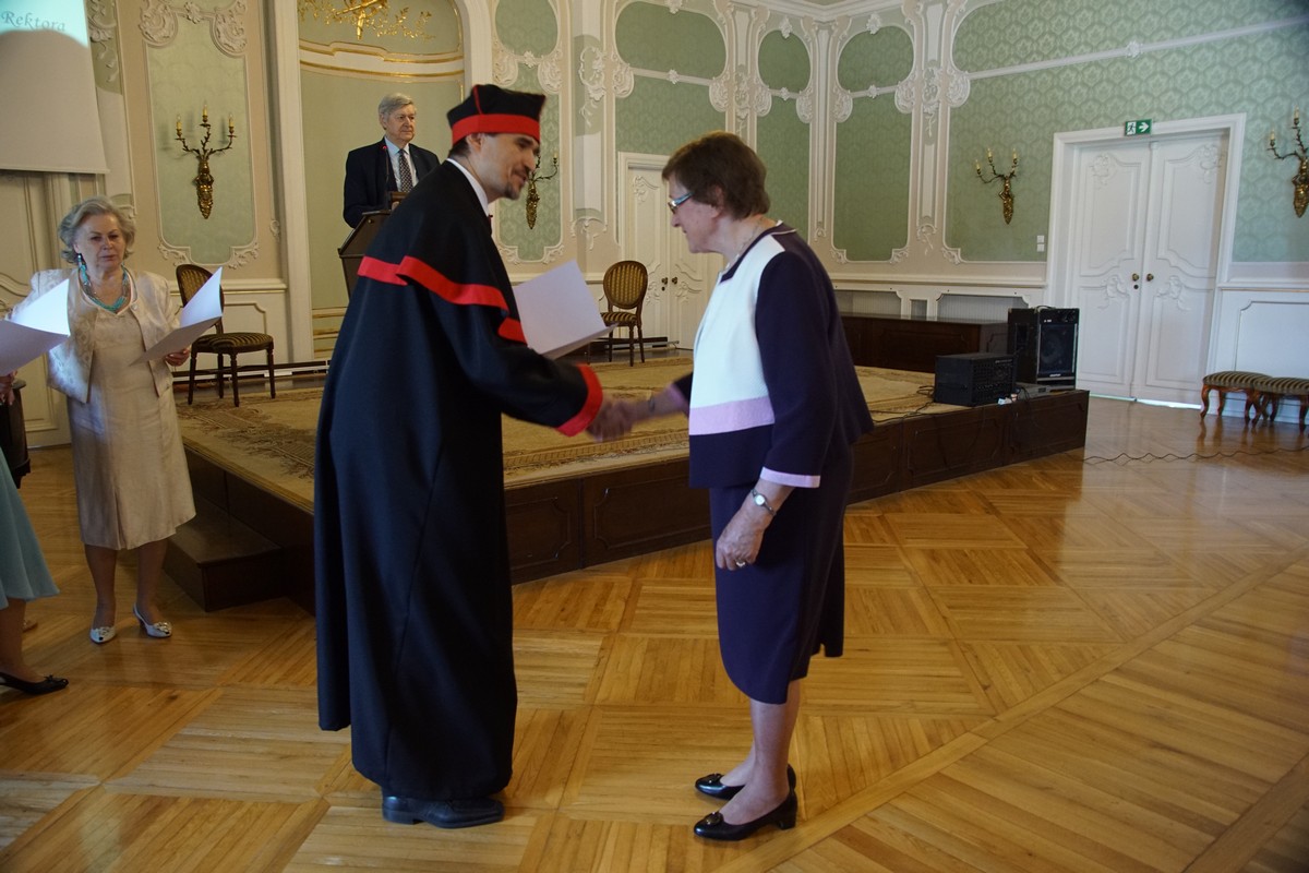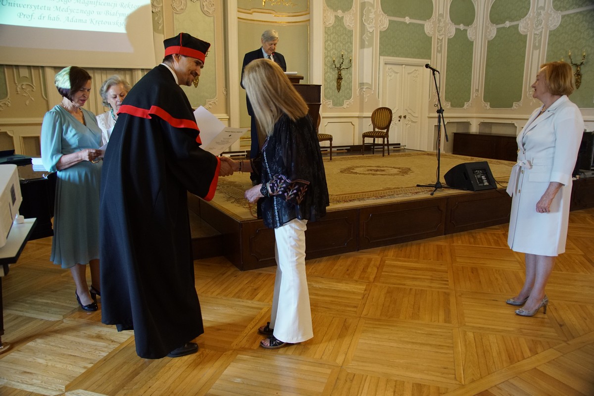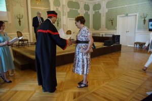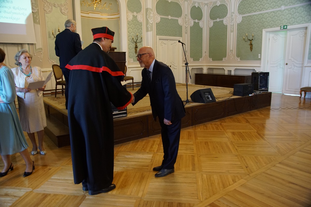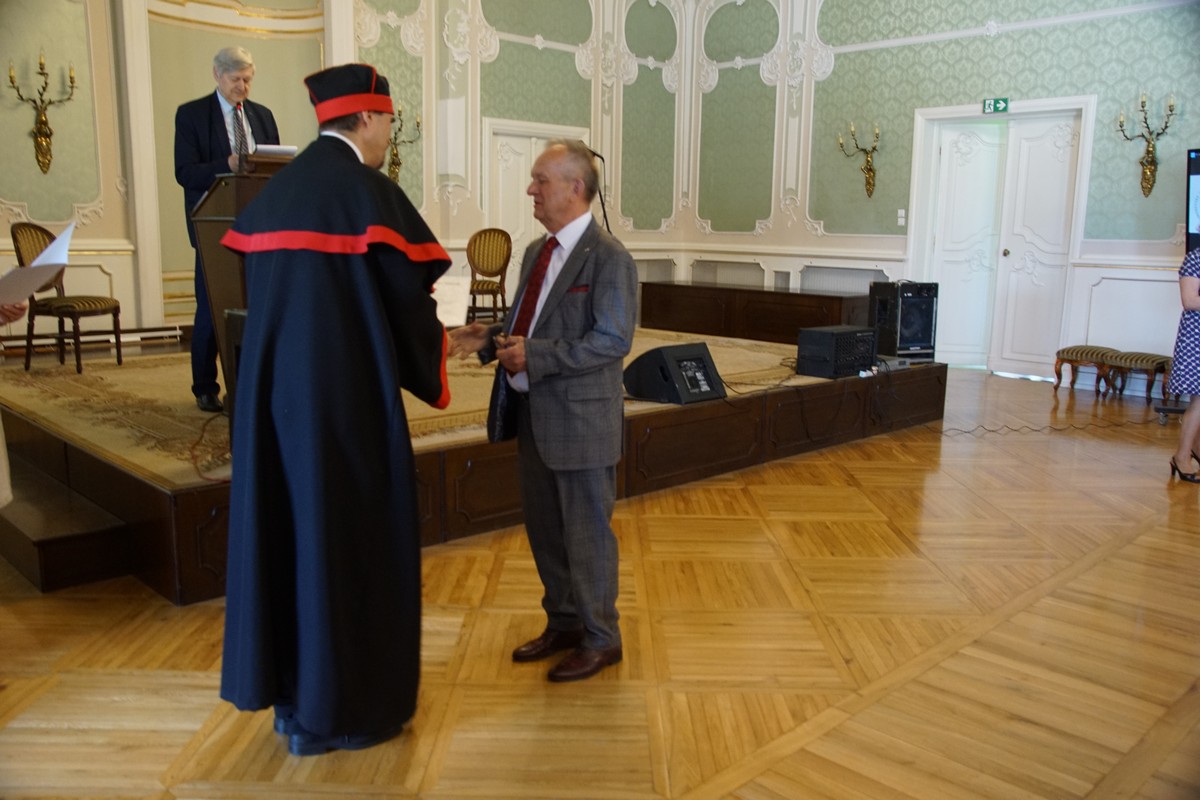 W Aula Magna Uniwersytetu Medycznego w Białymstoku, 25 czerwca 2022 roku odbyło się uroczyste odnowienie dyplomów lekarzy, którzy ukończyli naszą Ama Mater w 1971 roku. W uroczystości wzięli udział: prof. dr hab. Marcin Moniuszko, Prorektor ds. Nauki i Rozwoju oraz prof. dr hab. Karol Kamiński, Prodziekan ds. Ewaluacji i Nauki Wydziału Lekarskiego z Oddziałem Stomatologii i Oddziałem Nauczania w Języku Angielskim. Ponad 80 lekarzy, którzy wzięli udział w Zjeździe otrzymało dyplomy okolicznościowe.