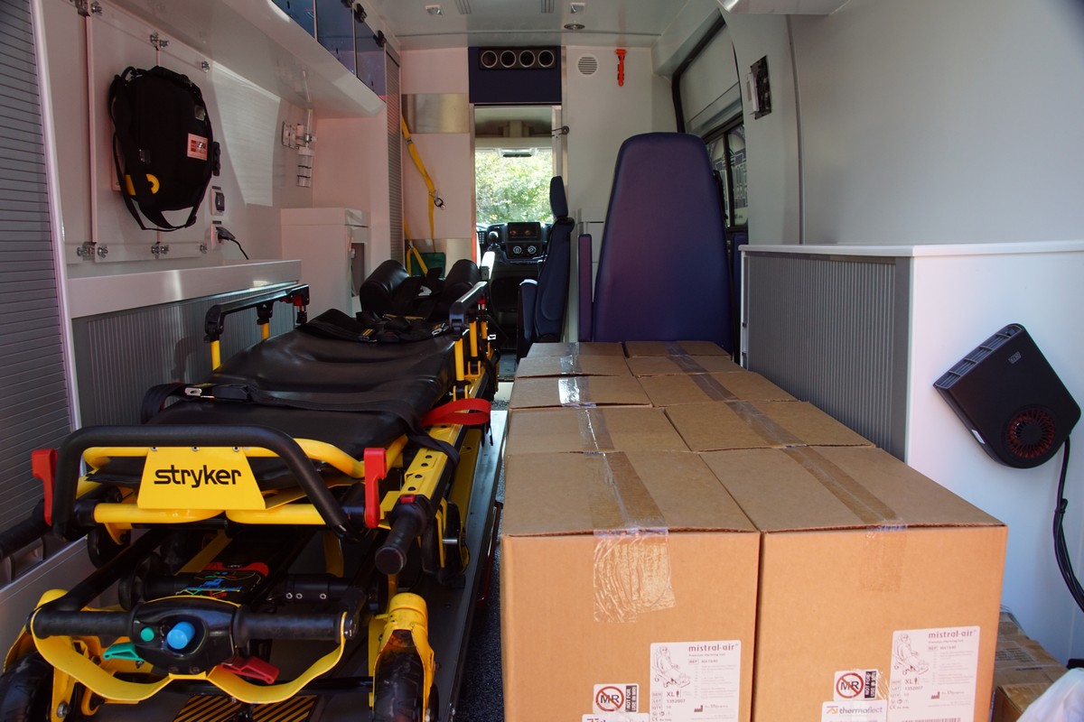 Nowy Ambulans marki Fiat Ducato wraz z wyposażeniem kosztował blisko 280 tys. złotych. Jest wyposażony m.in. w: łóżko, defibrylator, instalację tlenową, torbę medyczną i ssak.