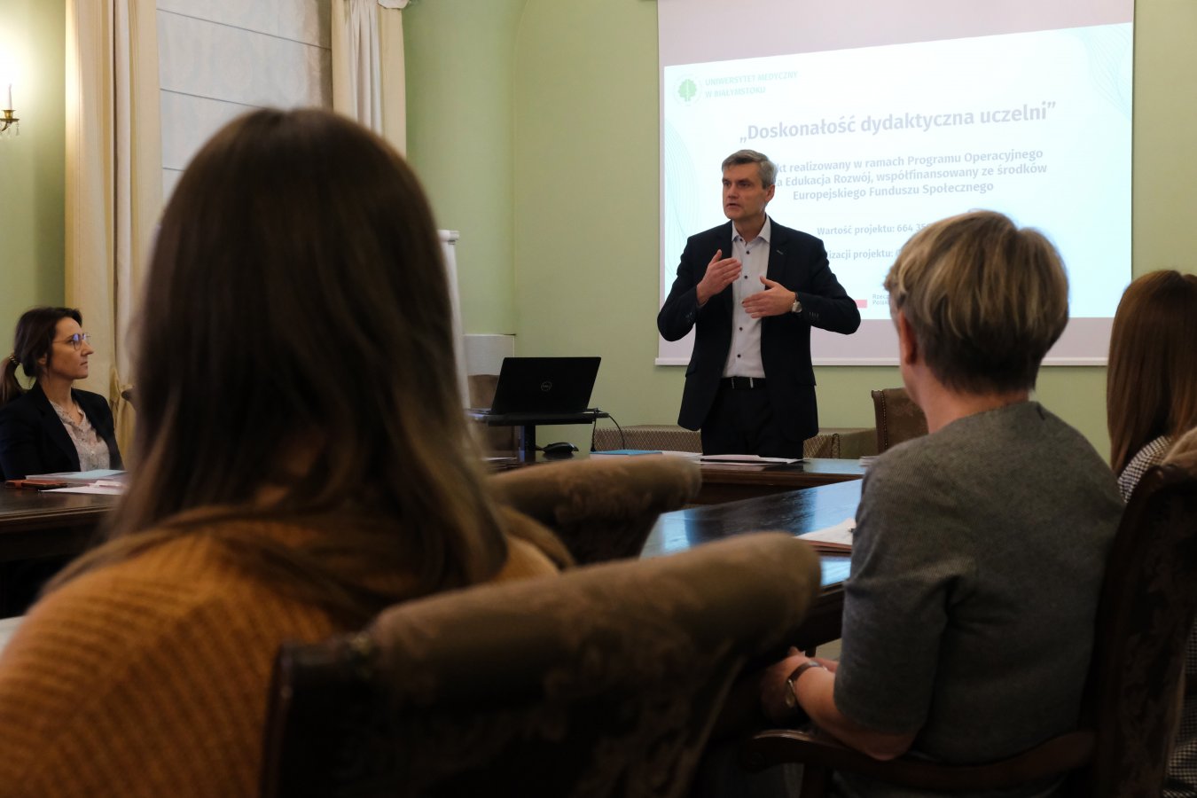 Doskonałość Dydaktyczna Uczelni – nowy projekt, który ma poprawić i usprawnić kształcenie studentów w UMB. We wtorek 22 listopada 2022 roku odbyło się pierwsze robocze spotkanie. Zaangażowano do niego kilkadziesiąt osób, ze wszystkich wydziałów, z dodatkowym wsparciem działów administracji Uczelni i organizacji studenckich. Finalnie – za niespełna rok – ma być wypracowana nowa strategia dydaktyczna dla UMB na lata 2023-2030. Nie jako dokument, który będzie leżał w ważnej szafie, ale praktyczne rozwiązania, które realnie mają podnieść jakość kształcenia. Przy czym mówimy tu o tradycyjnym sposobie nauczania, ale też e-learningu. Chodzi o sprawdzenie czy spełnienie efektów kształcenia, których oczekuje się od Uczelni, można osiągnąć w lepszy sposób. Przykład: czy do nauczenia się anatomii człowieka na właściwym poziomie, konieczne będzie przez studenta poznanie jej np. w języku łacińskim, albo czy student farmacji musi znać wszystkie wzory strukturalne poznawanych substancji. Nie mniej ważnym elementem projektu będzie wykształcenie nowych liderów, zarówno tych od dydaktyki jak i zagadnień cyfrowych. To oni w przyszłości mają posiąść takie kompetencje, które pozwolą im kształtować nowe wizje rozwoju dydaktyki na UMB.