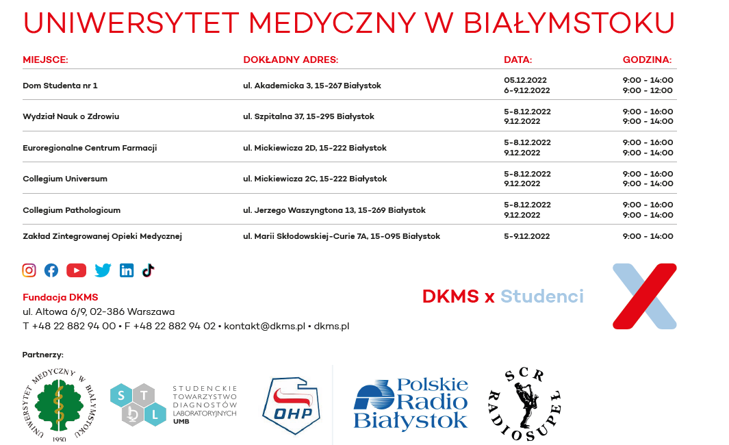 Serdecznie zapraszamy do wzięcia udziału w akcji fundacji DKMS "Zostań dawcą szpiku- zarejestruj się na swojej Uczelni".
