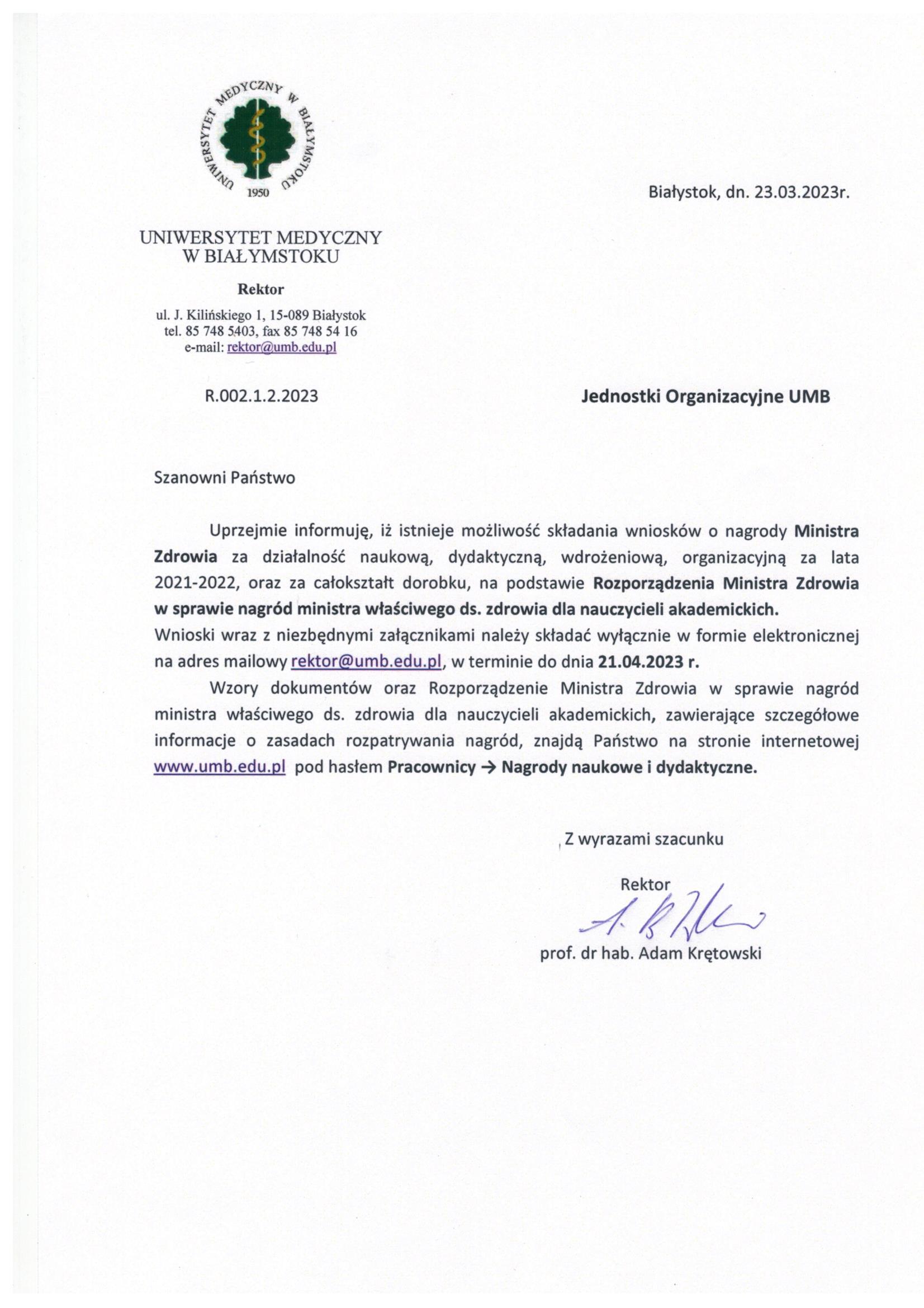 Nagrody Ministra Zdrowia dla nauczycieli akademickich za lata 2021-2022