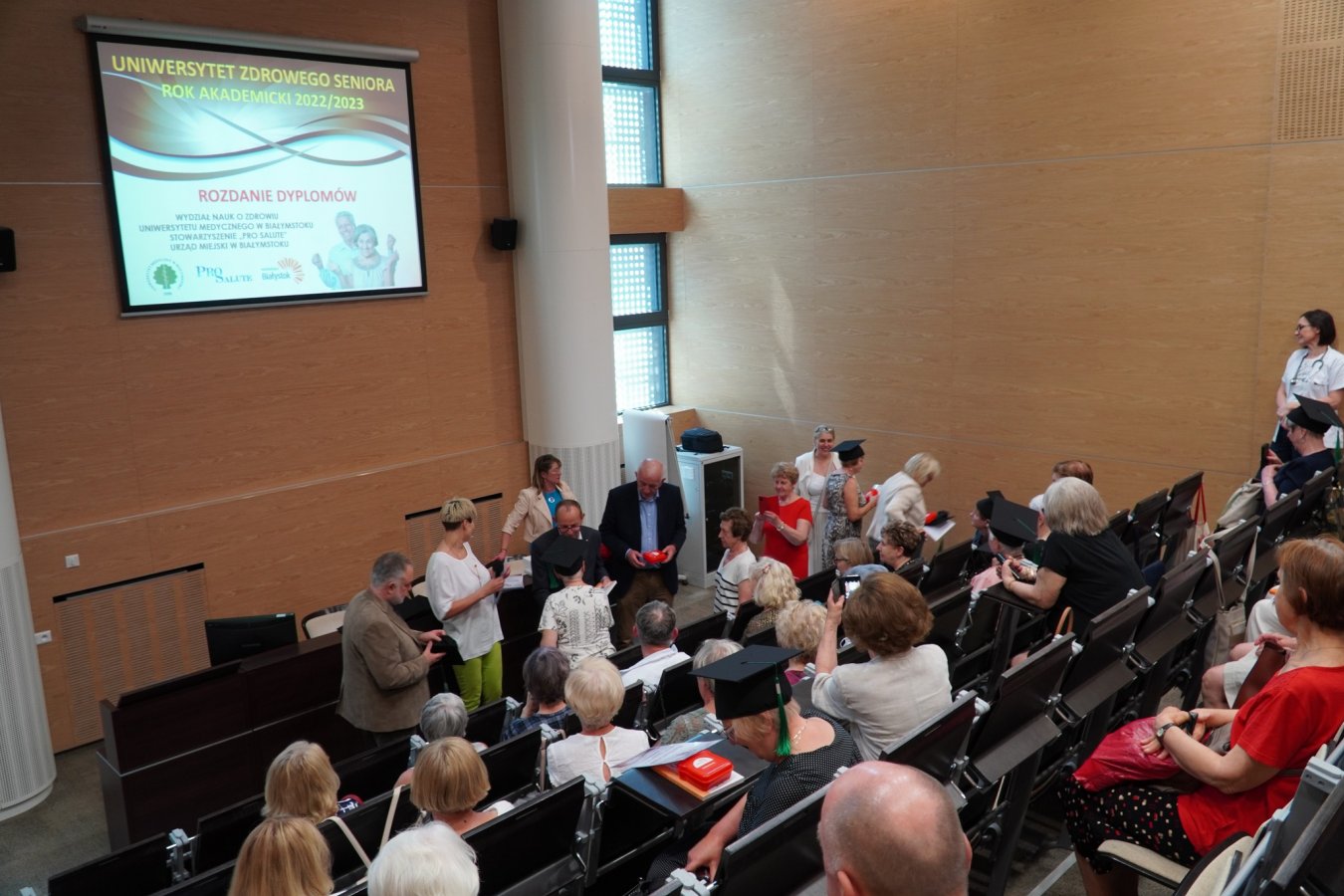 Uroczyste wręczenie dyplomów absolwentom Uniwersytetu Zdrowego Seniora i Uniwersytetu Profilaktyki Psychogeriatrycznej odbyło się we wtorek 6 czerwca 2023 roku na Wydziale Nauk o Zdrowiu Uniwersytetu Medycznego w Białymstoku.Podyplomowe studia ukończyło na obu kierunkach 90 seniorów z Białegostoku. (50 - Uniwersytetu Zdrowego Seniora i 40 - Uniwersytetu Profilaktyki Psychogeriatrycznej).
