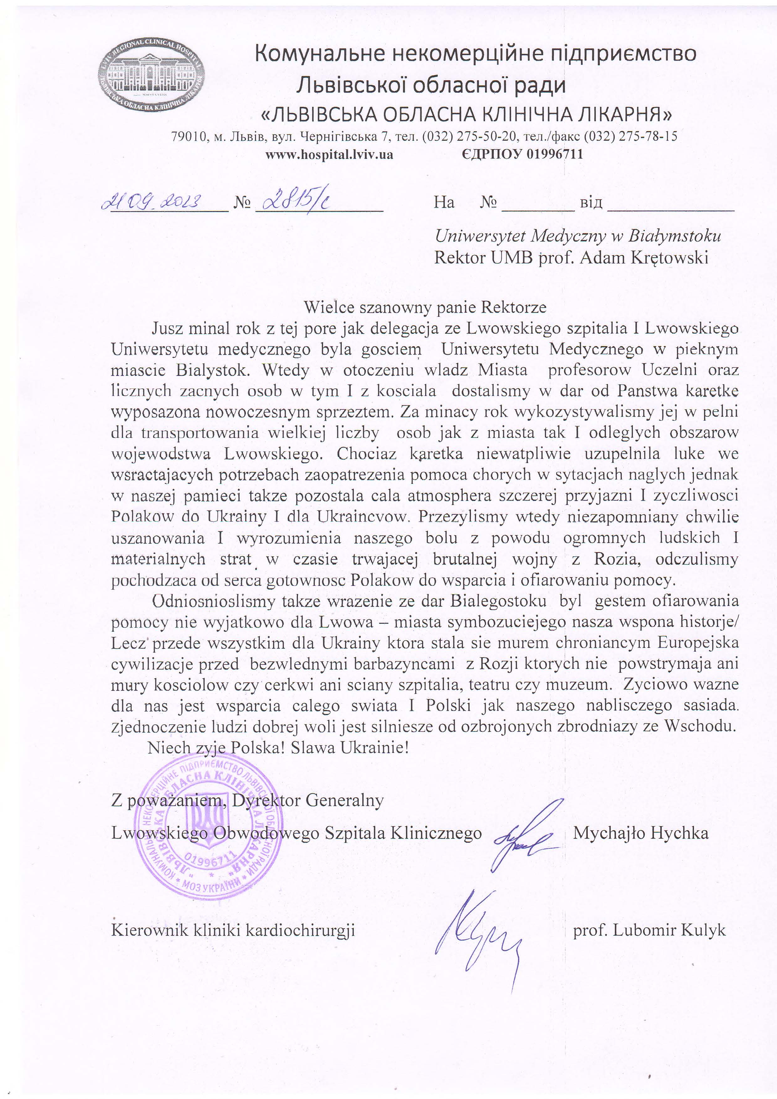 Film przysłany przez Profesora Lubomira Kulyka z Klinki Kardiochirurgii we Lwowie