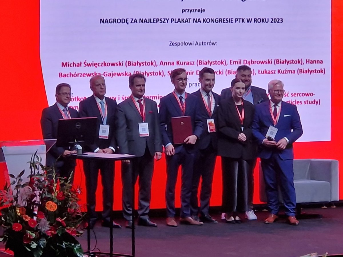 Podczas Kongresu Polskiego Towarzystwa Kardiologicznego, który odbył się w dniach 27-30 września 2023 roku w Poznaniu, zespół badaczy z Kliniki Kardiologii Inwazyjnej Uniwersytetu Medycznego w Białymstoku, pod kierunkiem prof. dr hab. Sławomira Dobrzyckiego zaprezentował istotne wyniki swoich najnowszych badań naukowych dotyczących profilaktyki oraz leczenia chorób sercowo-naczyniowych.
