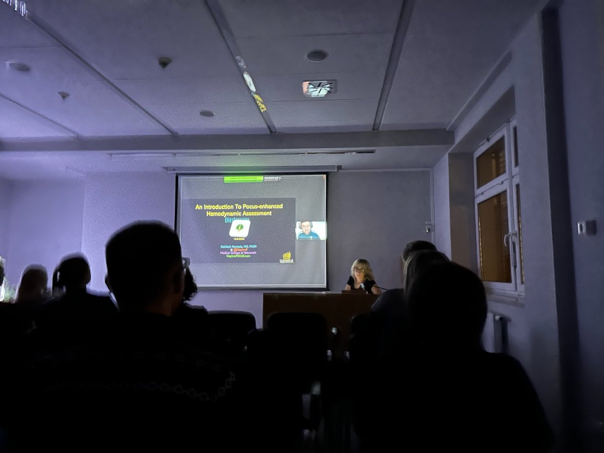 Przez dwa dni uczestnicy mogli wysłuchać wykładów dotyczących wielu aspektów płynoterapii prezentowanych przez ekspertów światowej sławy – prof. Manu Malbrain (Leuven, Belgia; założyciel International Fluid Academy, intensywista, prekursor strategii promującej ograniczanie płynoterapii – fluid stewardship) oraz prof. Abihalash Koratala (Wisconsin, USA; znany jako NephroPOCUS, entuzjasta ultrasonografii w nefrologii, laureat nagród edukacyjnych przyznawanych przez ASN, za promowanie nauki ultrasonografii w przestrzeni wirtualnej). Dodatkowe wykłady dotyczące POCUS, przedstawili z ramienia Kliniki prof. dr hab. Tomasz Hryszko, dr hab. Alicja Rydzewska-Rosołowska oraz dr Katarzyna Kakareko. Główną część warsztatów stanowiły jednak zajęcia praktyczne obejmujące biopsję nerki (model przygotowany przez pracowników Kliniki), USG oparte o przypadki kliniczne, VExUS i podstawy echo dla nefrologów również prowadzone przez zespół Kliniki (Tomasz Hryszko, Alicja Rydzewska-Rosołowska, Katarzyna Kakareko, Magdalena Charytoniuk, Katarzyna Mitrosz-Gołębiewska).
