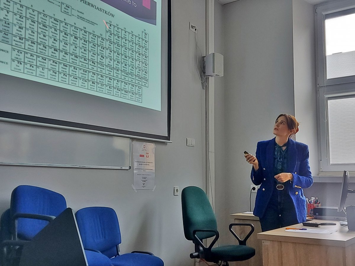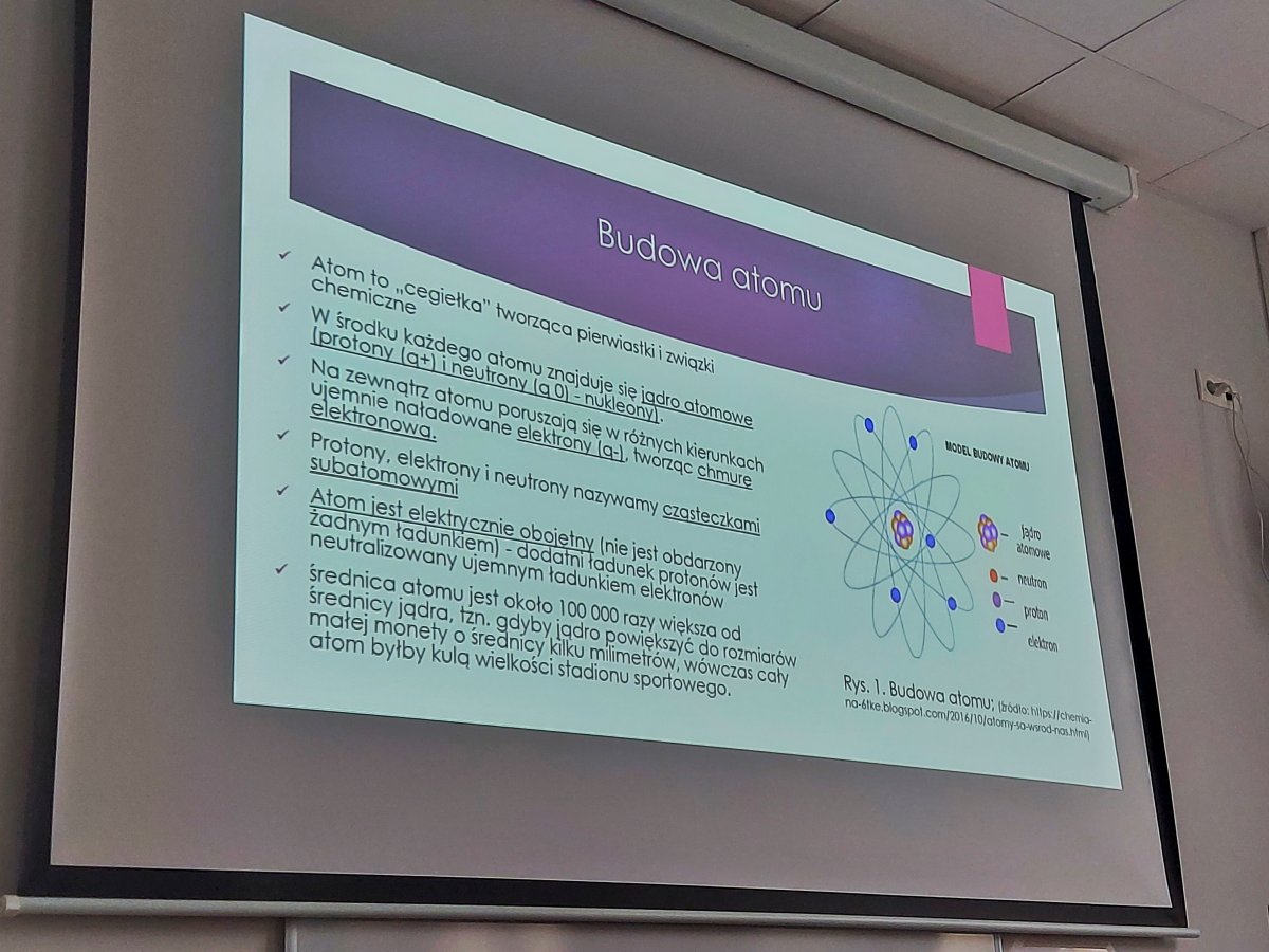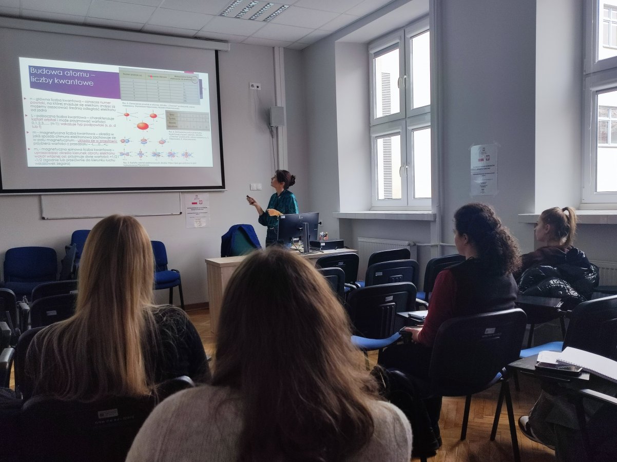,,Budowa materii” była tematem kolejnych konsultacji realizowanych w ramach projektu „Biologia i Chemia po akademicku 3”, które odbyły się 13 lutego 2024 roku. Dr Anna Tokarzewicz z Zakładu Biochemii Lekarskiej omówiła najważniejsze zagadnienia związane z budową atomu. Wyjaśniła, czym są cząsteczki chemiczne oraz jakie wiązania chemiczne występują w cząsteczkach. Uczestniczące w zajęciach licealistki dowiedziały się na czym polega reguła oktetu (dubletu) elektronowego oraz jak i kiedy powstają następujące wiązania chemiczne: jonowe, kowalencyjne, kowalencyjne spolaryzowane oraz koordynacyjne. Do każdego omawianego zagadnienia były przygotowane zadania.