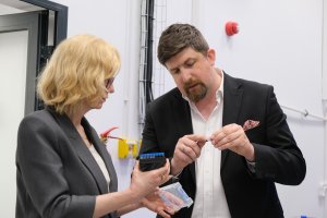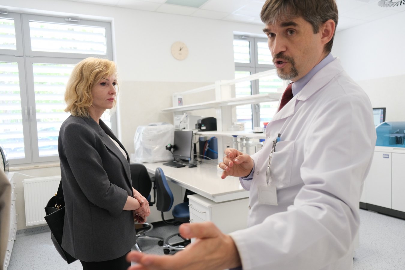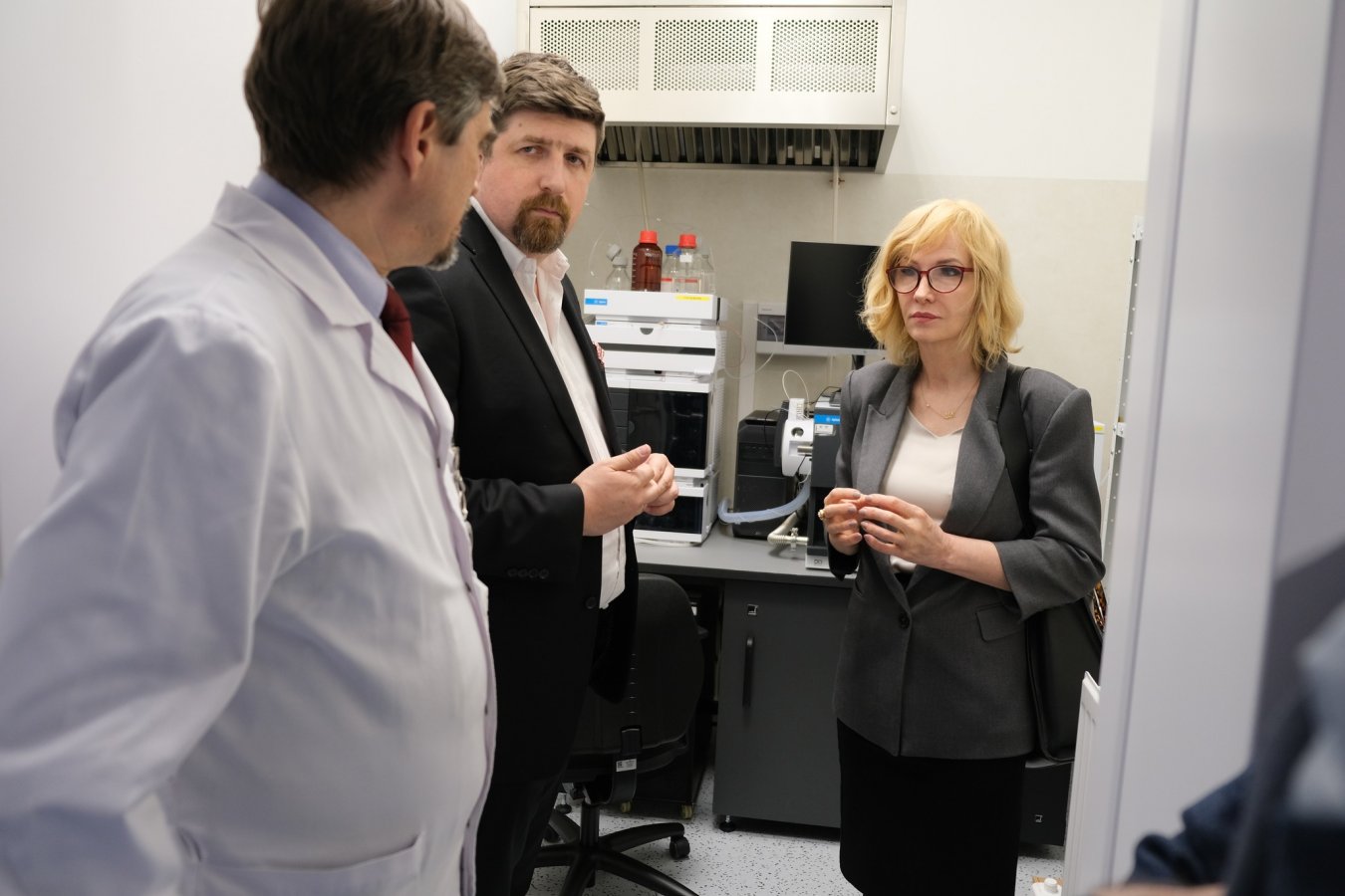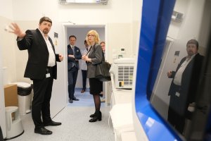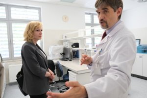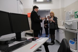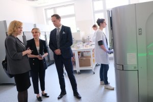 Pani Minister zwiedziła Centrum Futuri oraz Biobank UMB, które są jednymi z najnowszych uczelnianych inwestycji. Pani Profesor jest specjalistką w dziedzinie immunologii, alergologii i diagnostyki laboratoryjnej, więc była bardzo zainteresowana badaniami prowadzonymi w Centrum Futuri (m.in. badania populacyjne Białystok+, badania genomowe, czy te z zakresu medycyny regeneracyjnej).