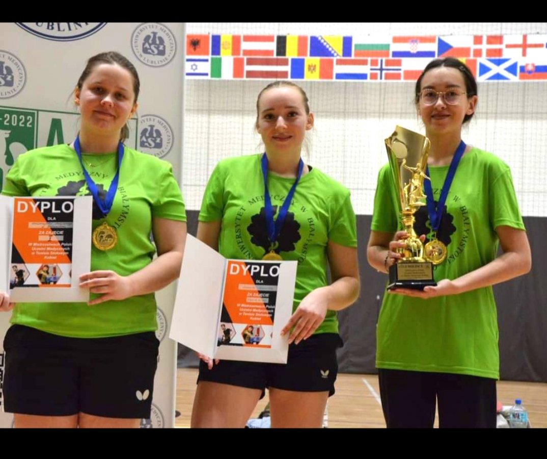 Z wielką radością informujemy, że studentki UMB zdobyły I miejsce na Mistrzostwach Polski Uczelni Medycznych w Tenisie Stołowym, które odbyły się dnia 18 maja 2024 roku w Lublinie. To wspaniałe osiągnięcie jest wynikiem ciężkiej pracy, determinacji i wyjątkowych umiejętności naszych zawodniczek.