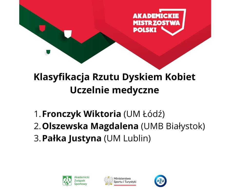 - 5 miejsce w rzucie dyskiem - Aleksandra Jarmocik studentka kierunku Lekarskiego
