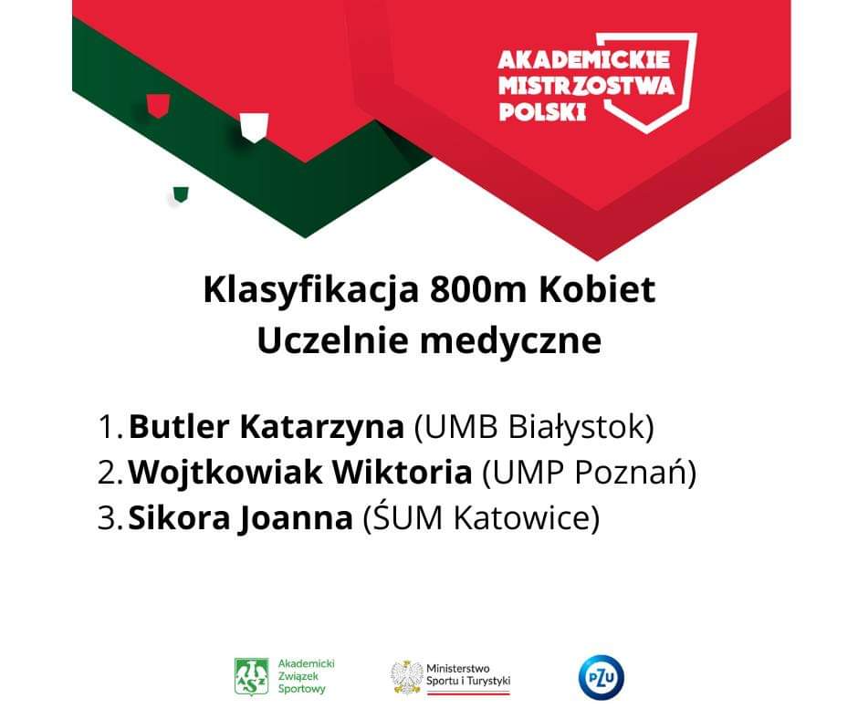 - złoty medal w biegu na 800m i srebrny medal w biegu na 1500m - Katarzyna Butler studentka kierunku Fizjoterapii