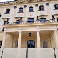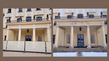 Trwa kolejny etap prac związanych z bieżącą konserwacją zewnętrznych elementów architektonicznych Pałacu Branickich w Białymstoku tj.: kolumn K35 – K38, gzyms G16, posadzki balkonu przy wejściu od ogrodów – kontynuacja prac.