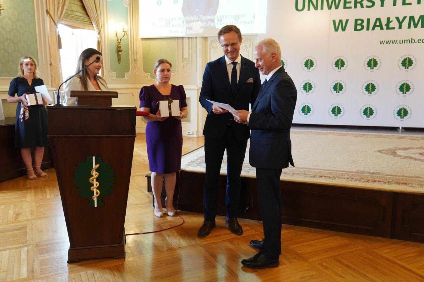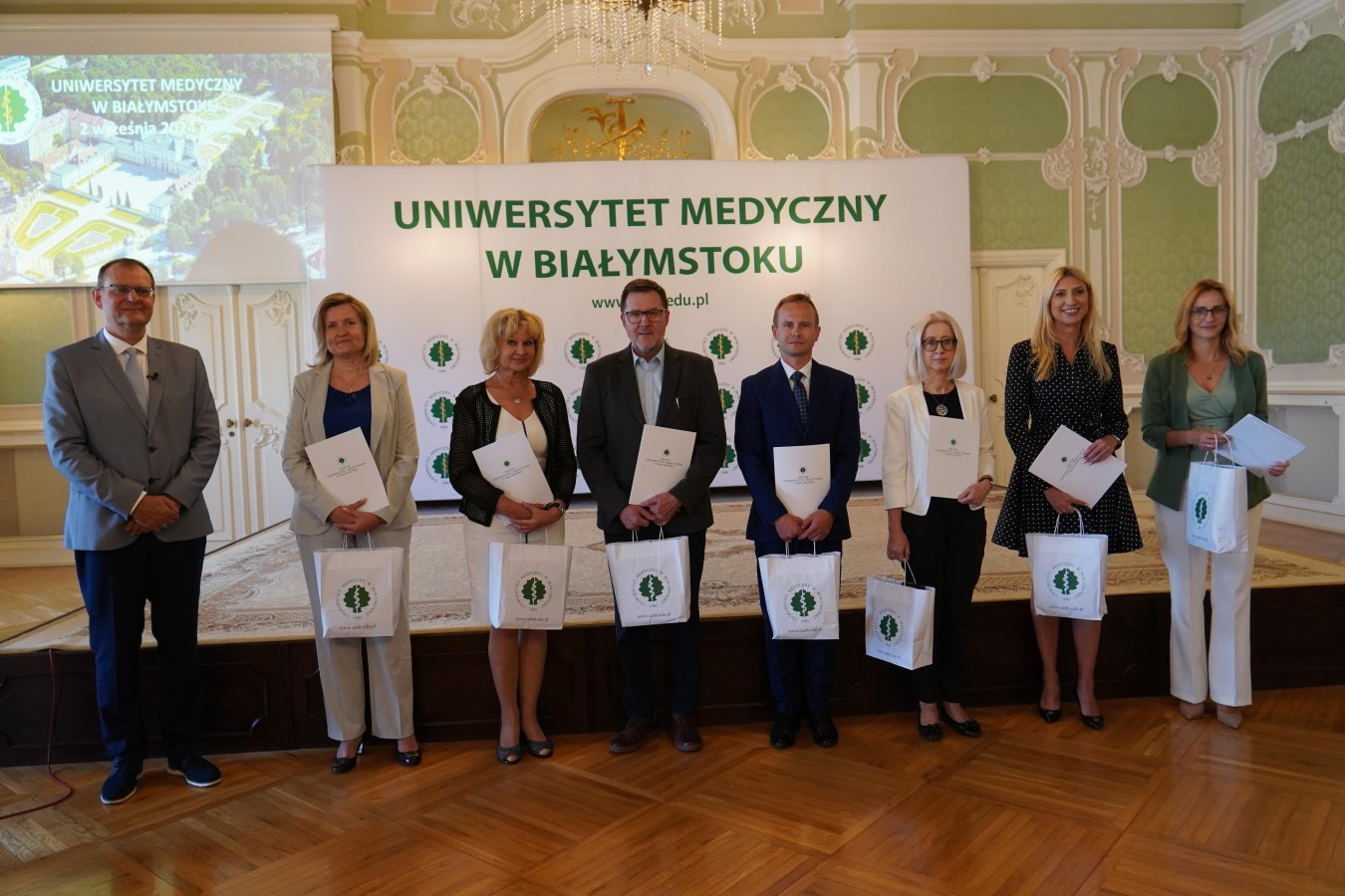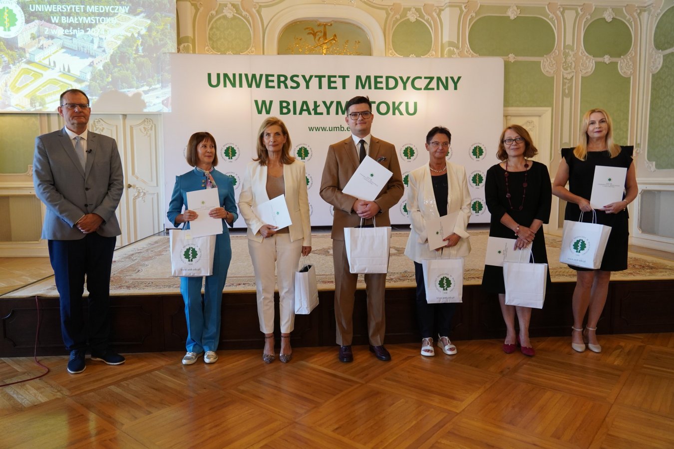 Były podziękowania, bo zakończenie kadencji i „powitania”, bo … początek kadencji – w poniedziałek (2 września 2024 roku) w Aula Magna UMB prof. Adam Krętowski serdecznie podziękował swoim współpracownikom (Prorektorom, Dziekanom i Prodziekanom, administracji Uczelni, pracownicom Biura Rektora i Dyrektorom szpitali klinicznych), natomiast nowy Rektor prof. Marcin Moniuszko wręczył nominacje prorektorskie, dziekańskie i prodziekańskie.