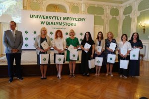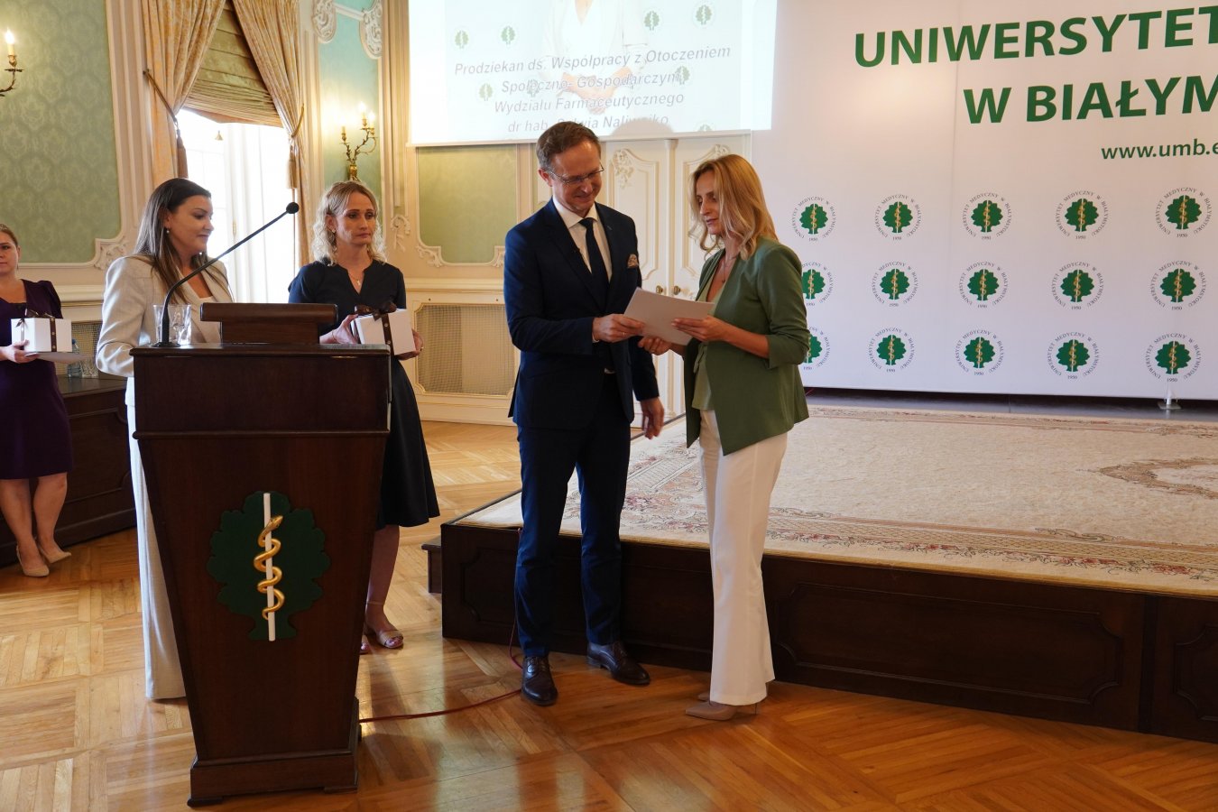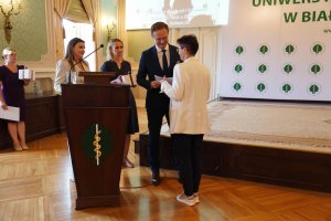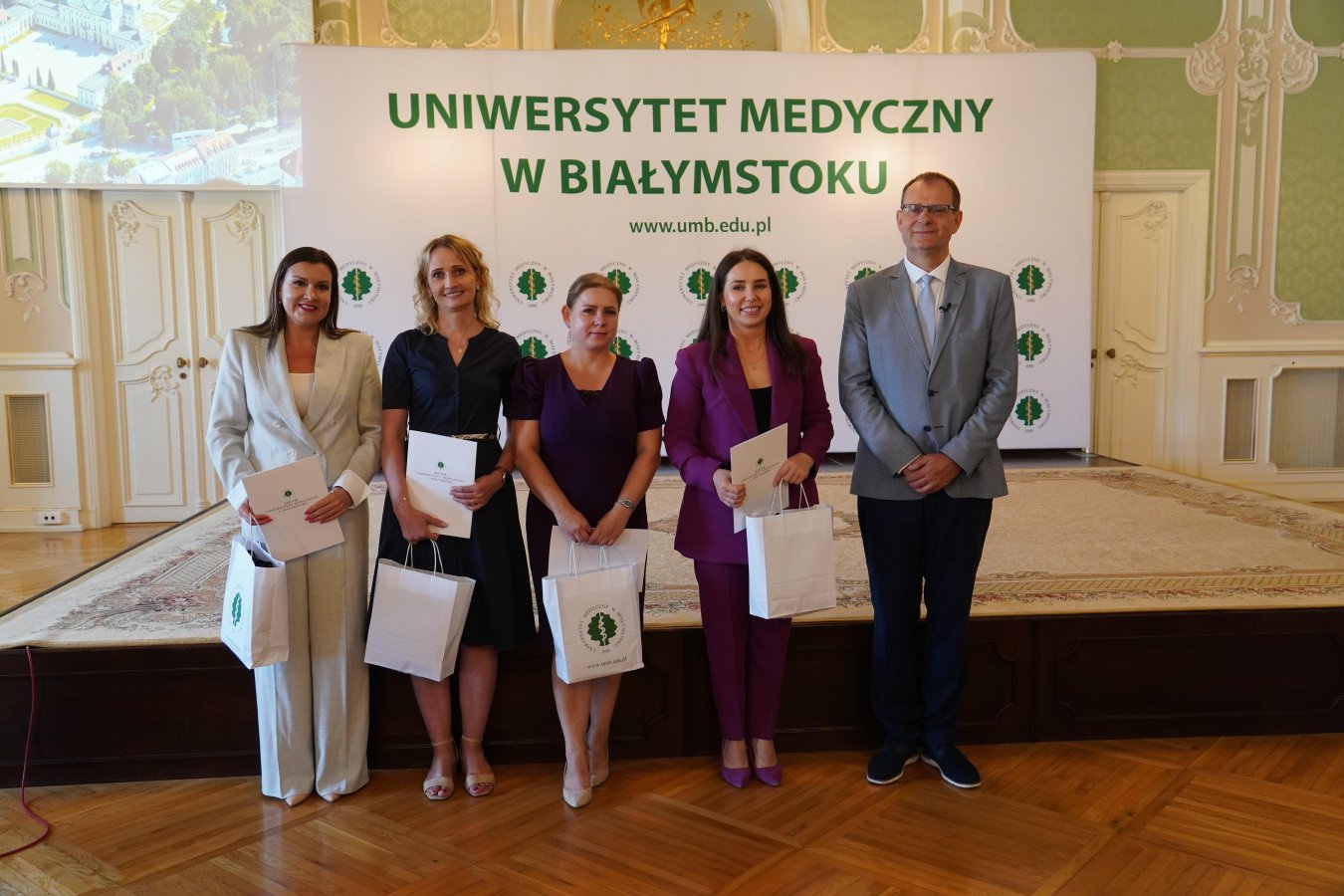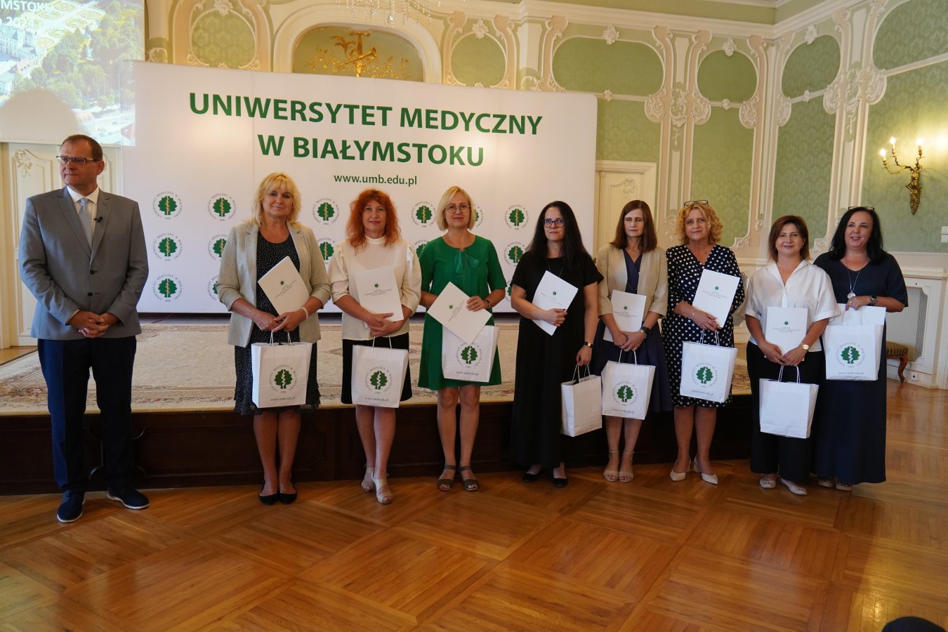 Były podziękowania, bo zakończenie kadencji i „powitania”, bo … początek kadencji – w poniedziałek (2 września 2024 roku) w Aula Magna UMB prof. Adam Krętowski serdecznie podziękował swoim współpracownikom (Prorektorom, Dziekanom i Prodziekanom, administracji Uczelni, pracownicom Biura Rektora i Dyrektorom szpitali klinicznych), natomiast nowy Rektor prof. Marcin Moniuszko wręczył nominacje prorektorskie, dziekańskie i prodziekańskie.