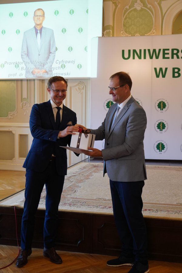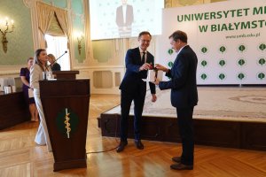 Kończąc swoje urzędowanie prof. Krętowski przyznał, że czuje radość i dumę. Radość, ponieważ przekazuję Uczelnię w bardzo dobre ręce. Przekazuję Uczelnię która jest w fantastycznym stanie. Jest nowoczesna, dynamicznie się rozwija, która ma największa liczbę studentów w swojej historii. W ciągu ostatnich lat zwiększyliśmy ich liczebność aż o 25 procent, w tym na kierunku lekarskim i English Division aż o 50 procent, a na pielęgniarstwie aż o 80 procent. Rozwijamy też infrastrukturę naukową. Nowe inwestycje poczynione na Uczelni w ciągu ostatnich lat mają wartość ponad 500 mln zł pozyskanych z funduszy europejskich - to jest skok cywilizacyjny.