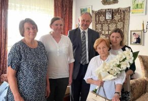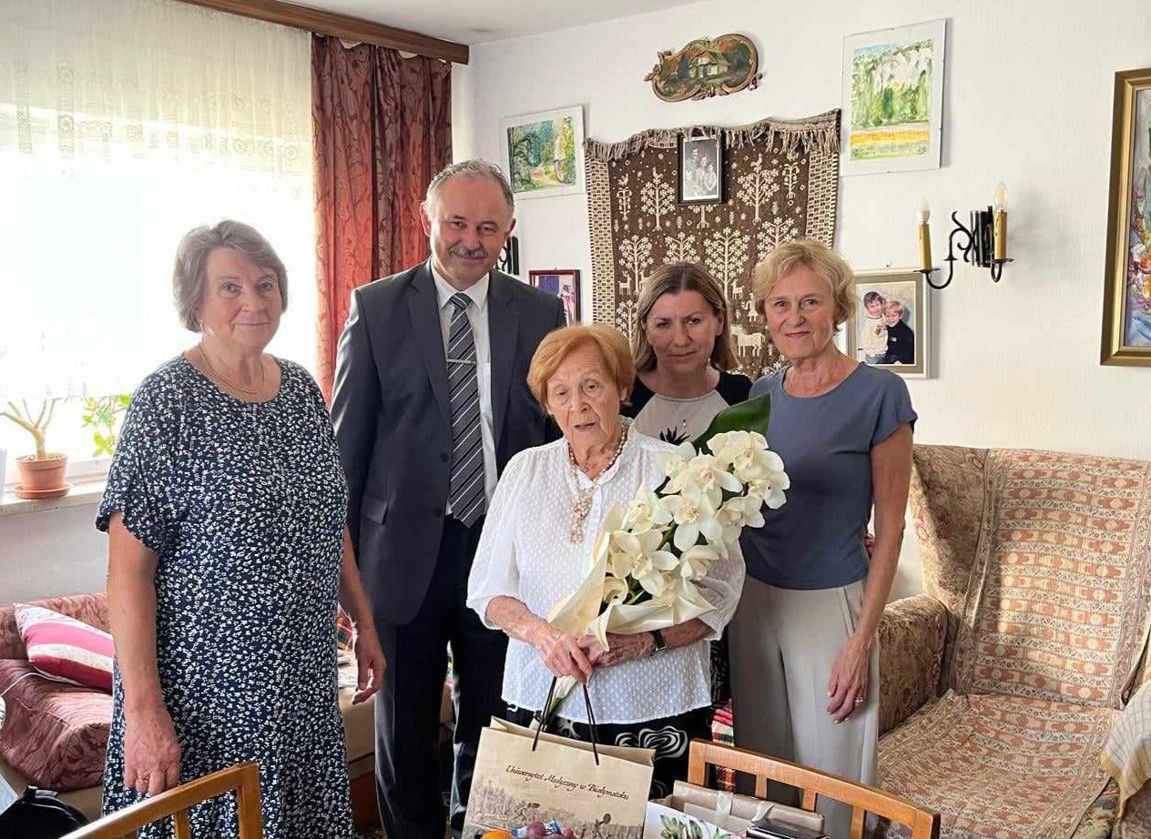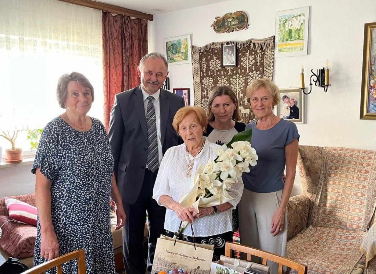17 września swoje 100 urodziny obchodzi dr hab. Bronisława Ross, która ponad 50 lat temu na naszej Uczelni współtworzyła Klinikę Chirurgii Szczękowo-Twarzowej. Z tej okazji, w ubiegłą niedzielę, Panią Profesor z kwiatami odwiedzili pracownicy UMB: prof. Jan Borys, obecny Kierownik Kliniki, dr Anna Wincewicz-Pietrzykowska, dr Bożena Antonowicz – Kierownik Zakładu Chirurgii Stomatologicznej i lek. dent. Kamila Łukaszuk. Życzenia Jubilatce przekazał również Rektor Profesor Marcin Moniuszko.