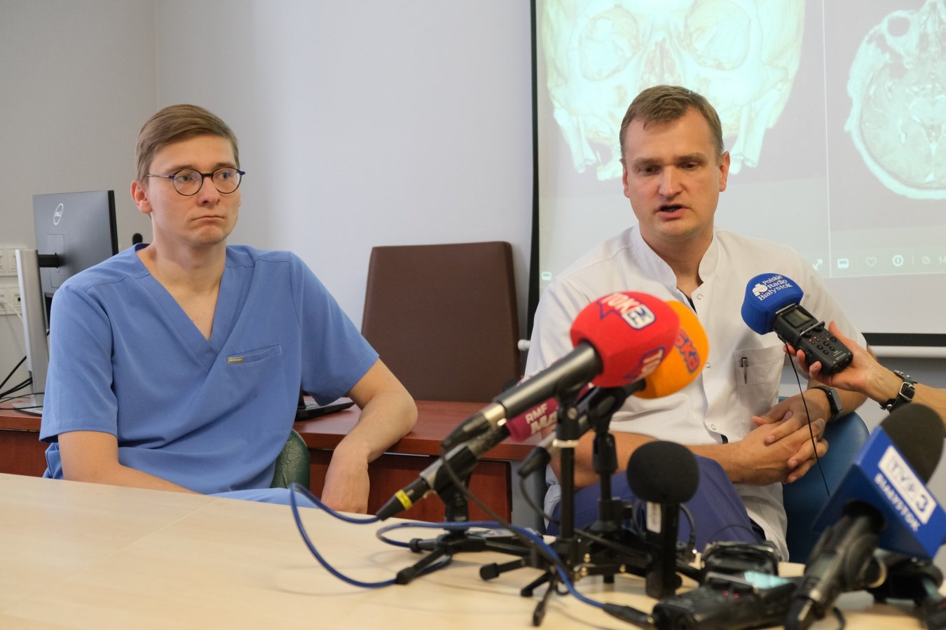 - Wykonaliśmy niewielkie nacięcie powieki i wzdłuż zbiegu górnej i bocznej ściany oczodołu wytworzyliśmy wąski korytarz do środkowego dołu czaszki, gdzie jest płat skroniowy – opowiada dr Robert Chrzanowski, który wspólnie z dr Robertem Rutkowskim wykonywał operację.