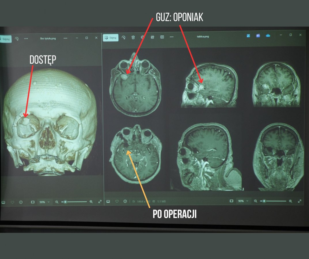 Operacja odbyła się 2 października 2024. Pacjent czuje się dobrze. Wstał z łóżka już na drugi dzień po operacji. I została mu jedynie pamiątka w postaci niewielkiej blizny po nacięciu powieki, nie większej niż ta pozostawiana po blefaroplastyce – kosmetycznej operacji na opadające powieki. Również rokowania pacjentka są dobre. Choć nie ma jeszcze wyników badań histopatologicznych, wszystko wskazuje na to, że był to oponiak, czyli guz łagodny.