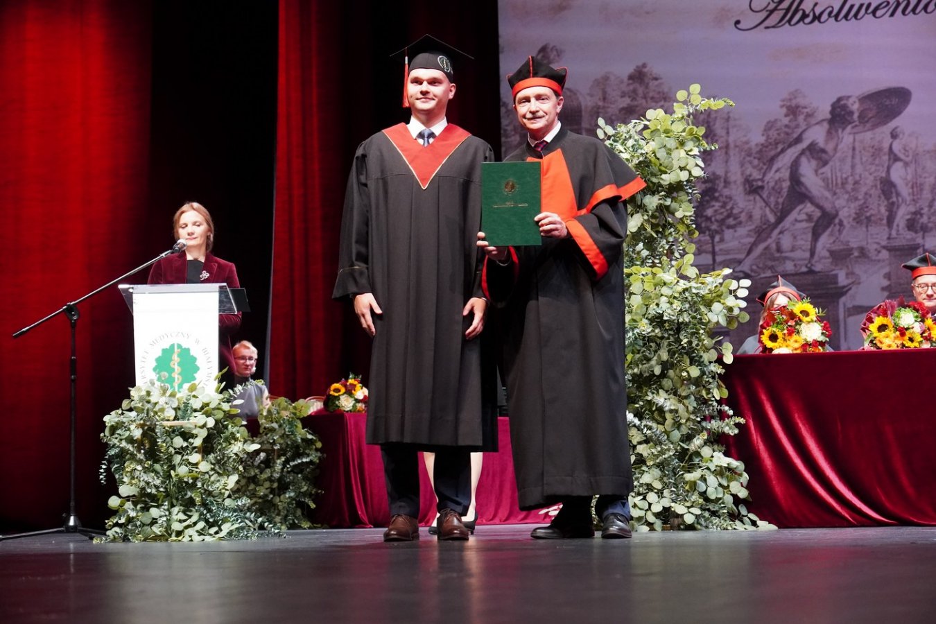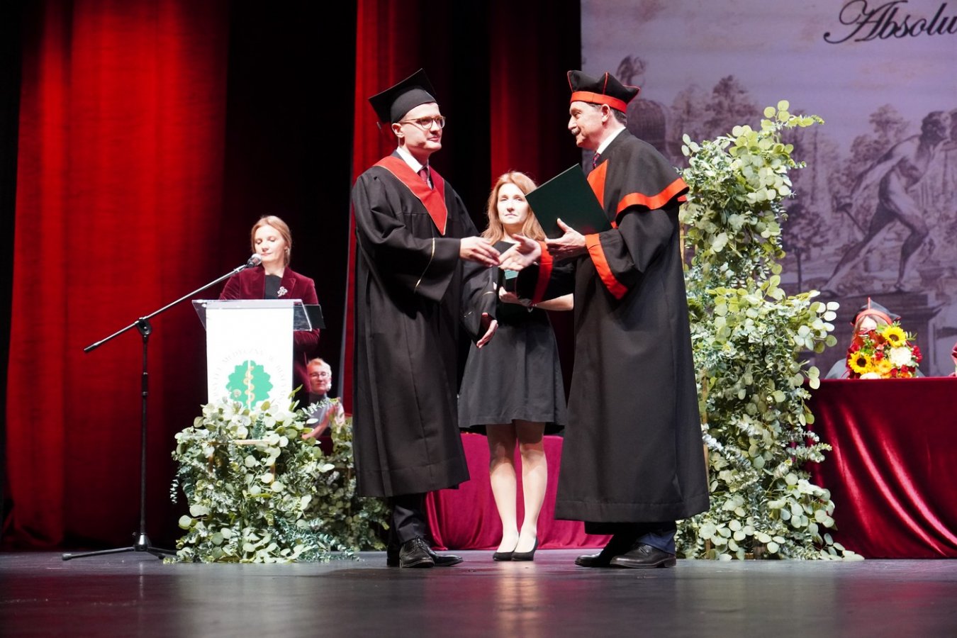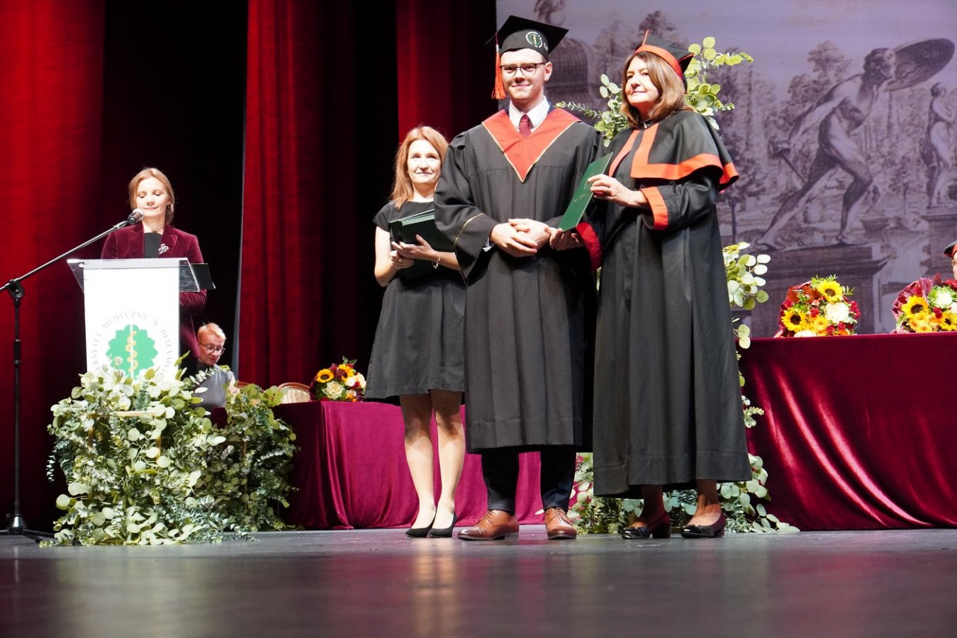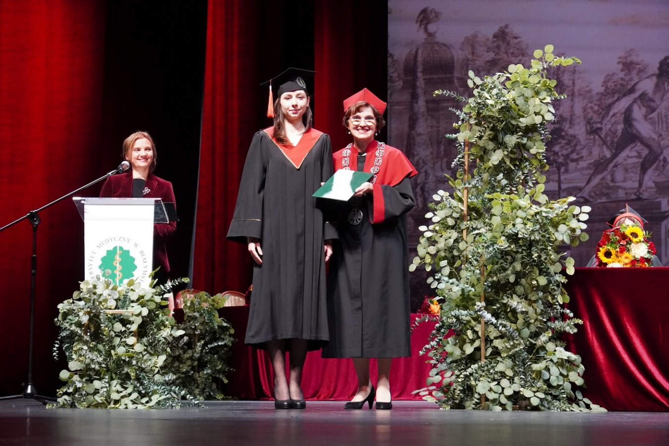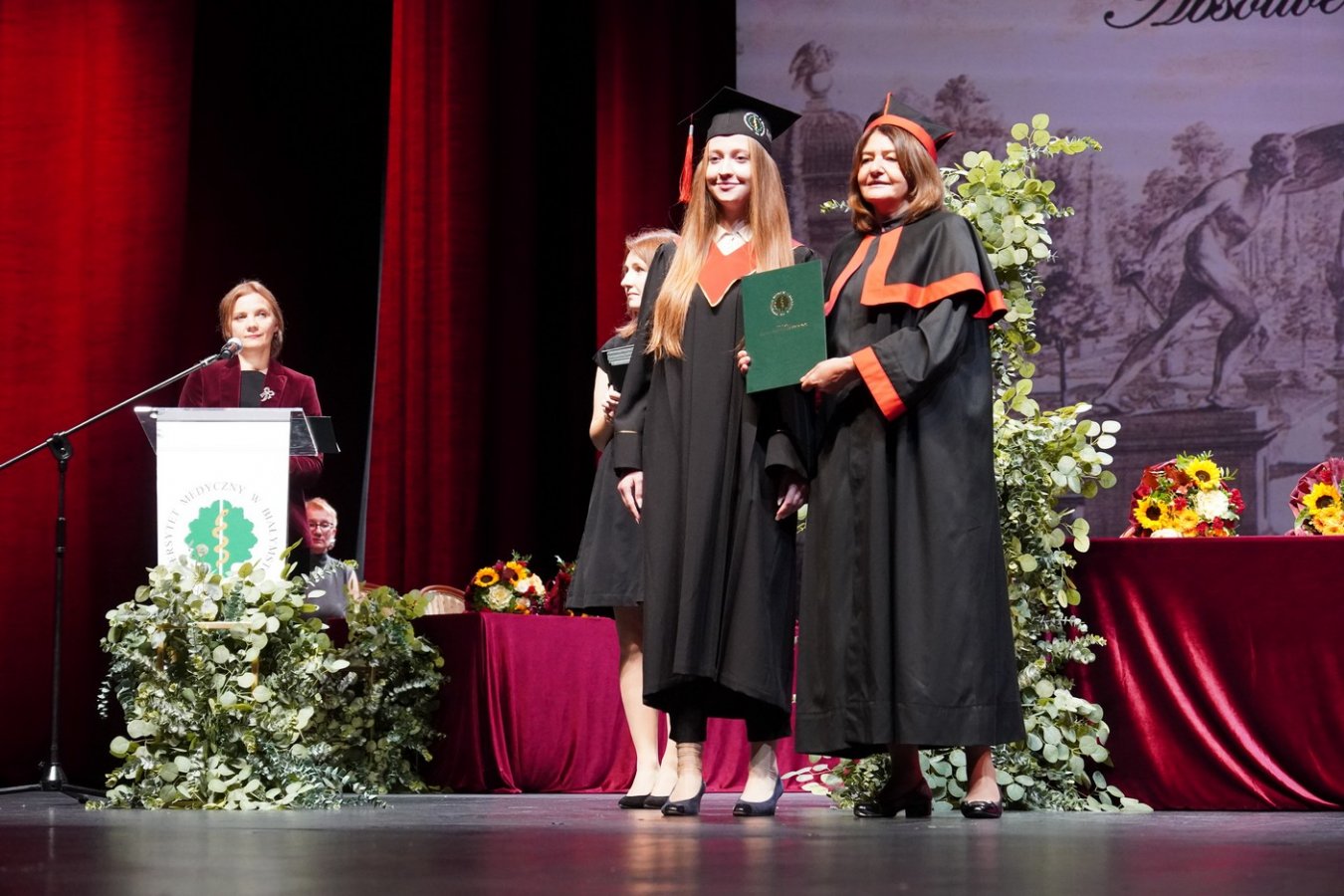 Prorektor ds. Kształcenia prof. Adrian Chabowski podkreślał emocje jakie towarzyszyły podczas studiowania: to był stres, frustracja, elementy związane z zaliczeniami i egzaminami, ale była też ambicja, żeby być lepszym, żeby poznać. I do tego potężny zasób satysfakcji: to ja to zrobiłem, to ja to osiągnąłem. I to zostanie z Wami, bo w Waszej przyszłej pracy będą te same emocje: stres, ambicja do dążenia w kierunku najlepszej diagnostyki, w kierunku najlepszego leczenia. I później to morze satysfakcji: to mój pacjent czuje się lepiej.