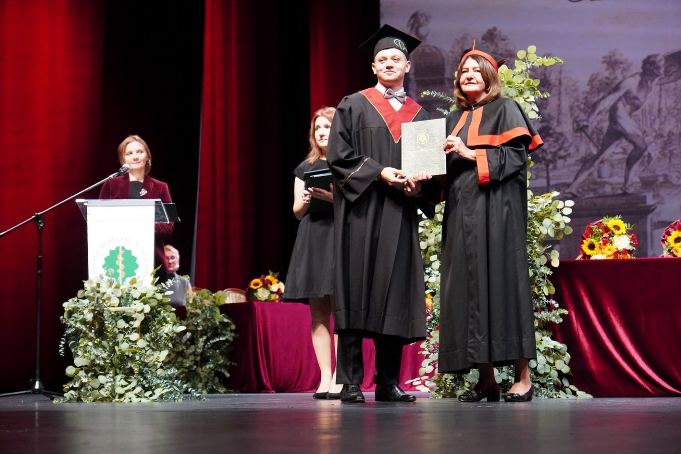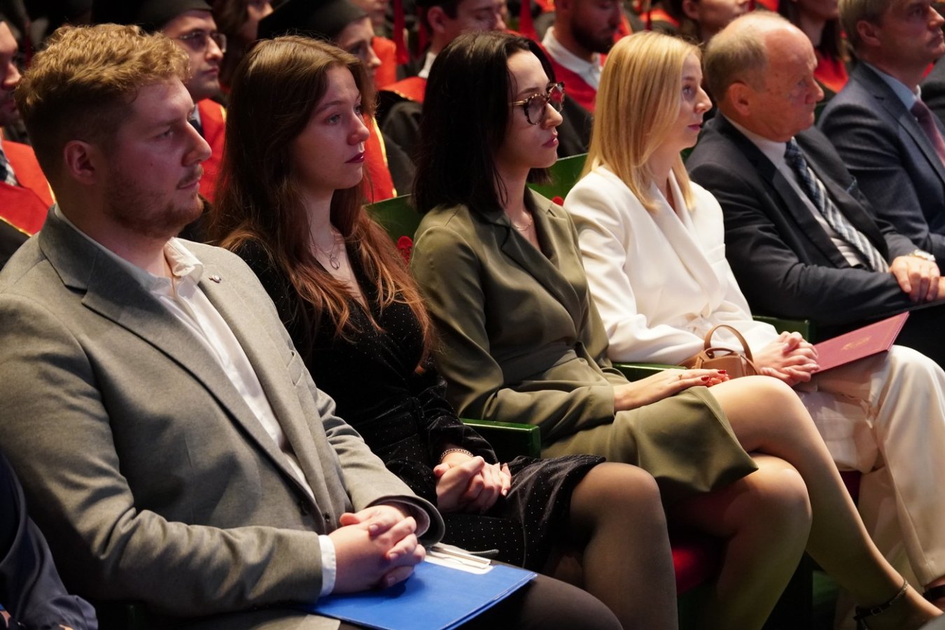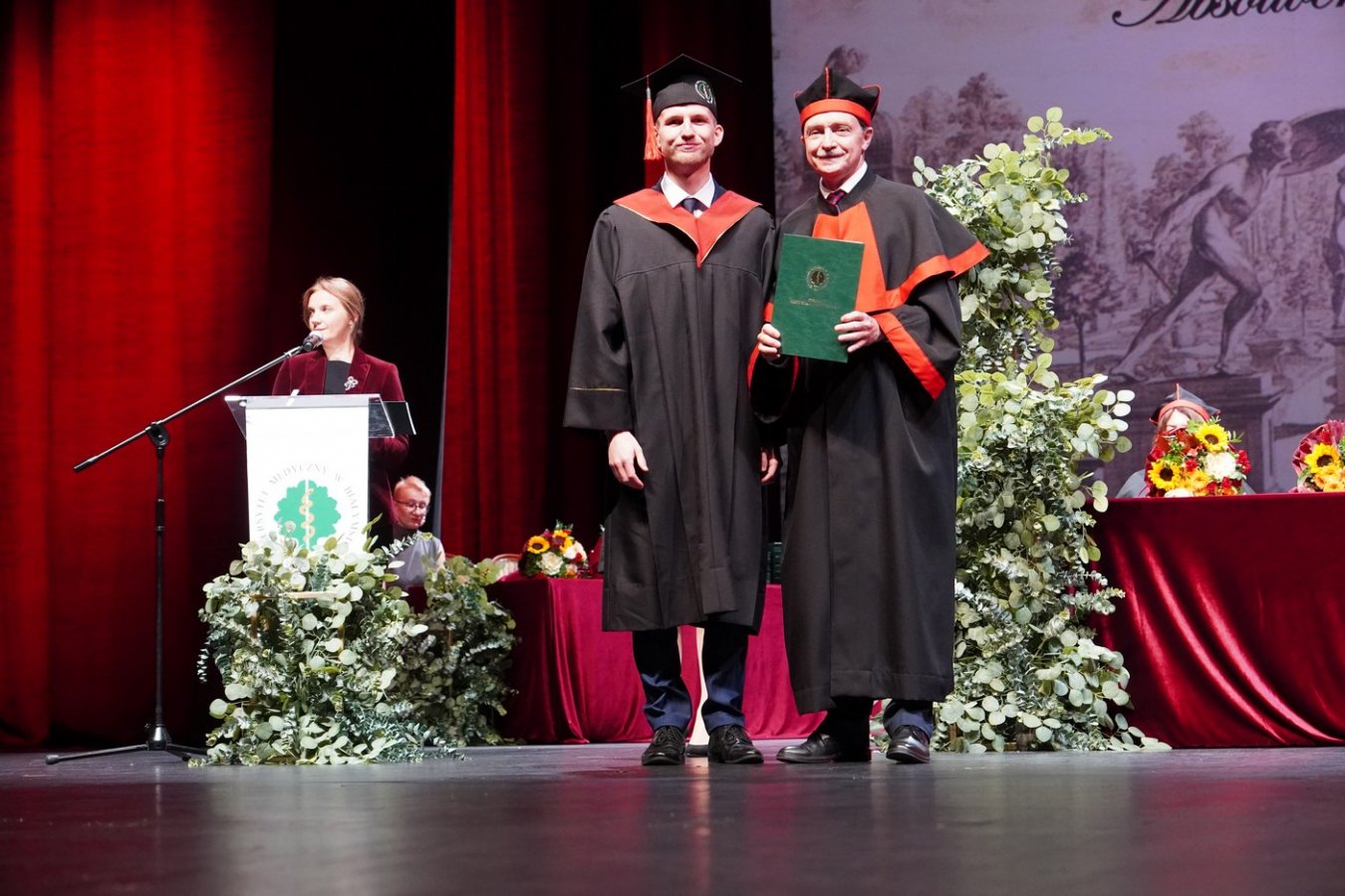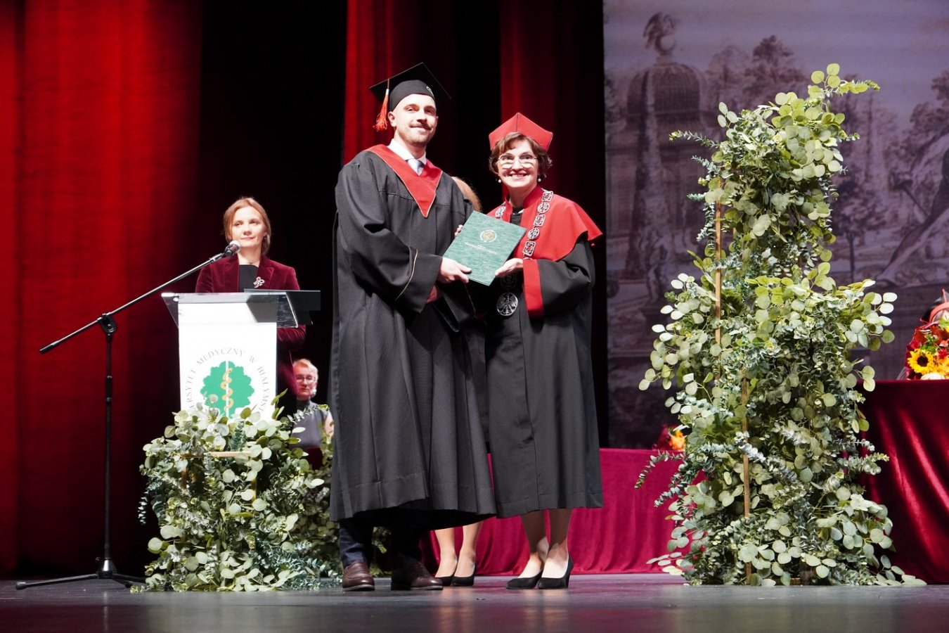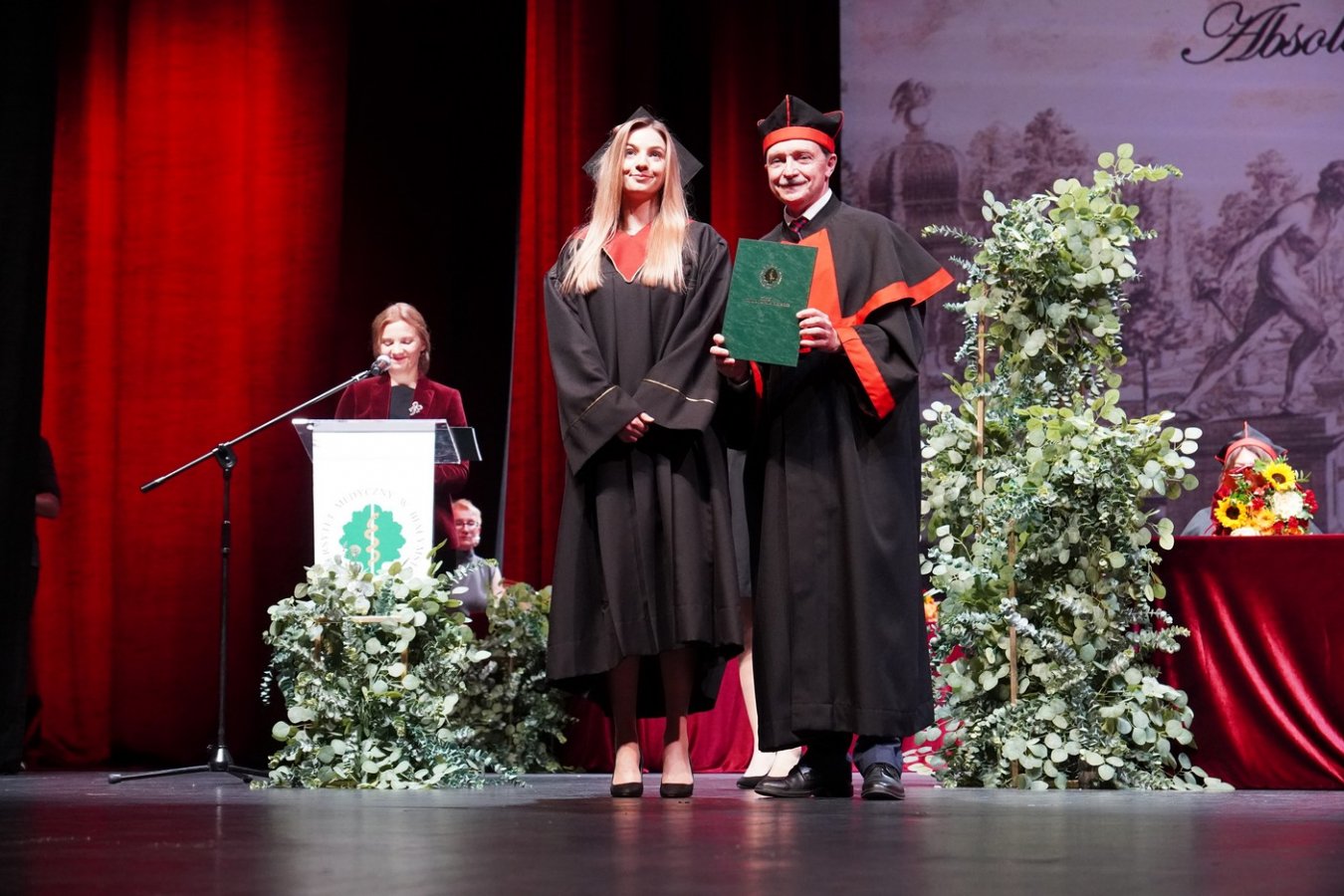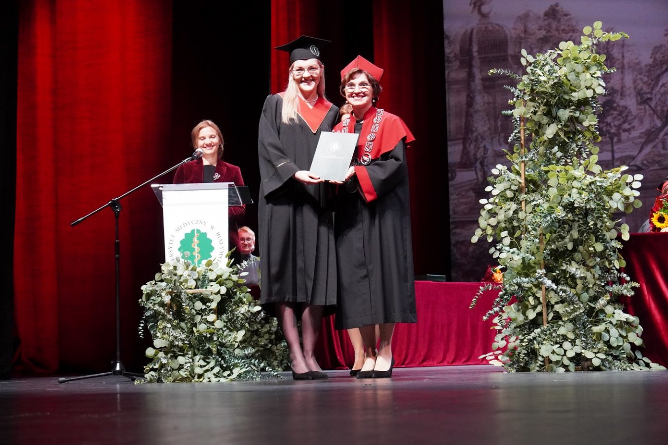 Prorektor ds. Kształcenia prof. Adrian Chabowski podkreślał emocje jakie towarzyszyły podczas studiowania: to był stres, frustracja, elementy związane z zaliczeniami i egzaminami, ale była też ambicja, żeby być lepszym, żeby poznać. I do tego potężny zasób satysfakcji: to ja to zrobiłem, to ja to osiągnąłem. I to zostanie z Wami, bo w Waszej przyszłej pracy będą te same emocje: stres, ambicja do dążenia w kierunku najlepszej diagnostyki, w kierunku najlepszego leczenia. I później to morze satysfakcji: to mój pacjent czuje się lepiej.