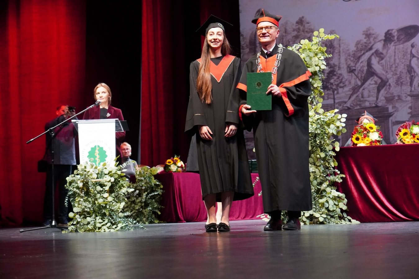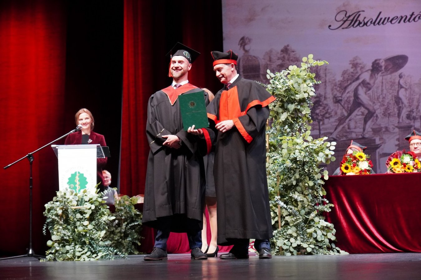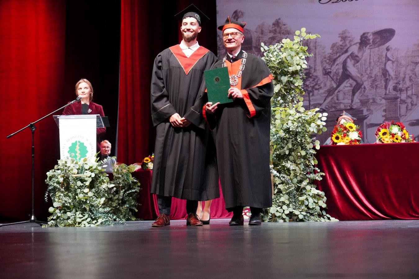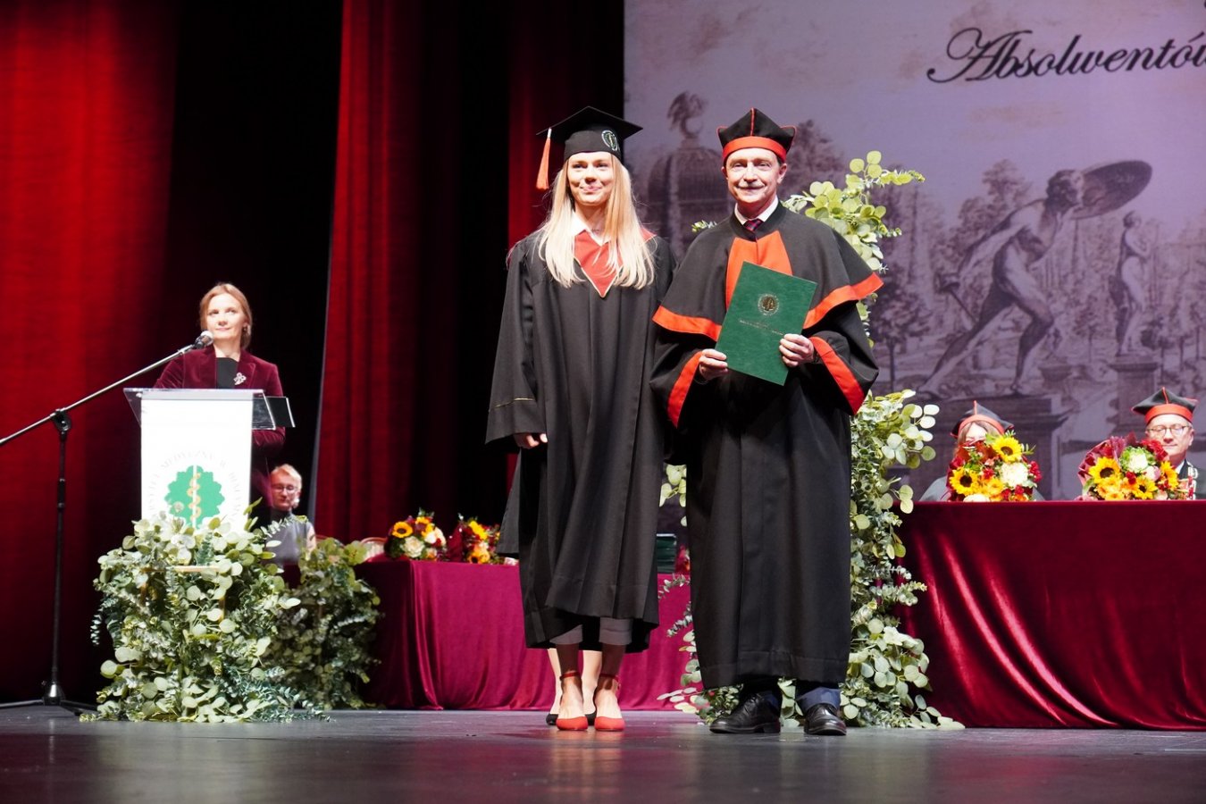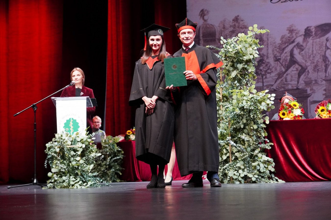 Prorektor ds. Kształcenia prof. Adrian Chabowski podkreślał emocje jakie towarzyszyły podczas studiowania: to był stres, frustracja, elementy związane z zaliczeniami i egzaminami, ale była też ambicja, żeby być lepszym, żeby poznać. I do tego potężny zasób satysfakcji: to ja to zrobiłem, to ja to osiągnąłem. I to zostanie z Wami, bo w Waszej przyszłej pracy będą te same emocje: stres, ambicja do dążenia w kierunku najlepszej diagnostyki, w kierunku najlepszego leczenia. I później to morze satysfakcji: to mój pacjent czuje się lepiej.
