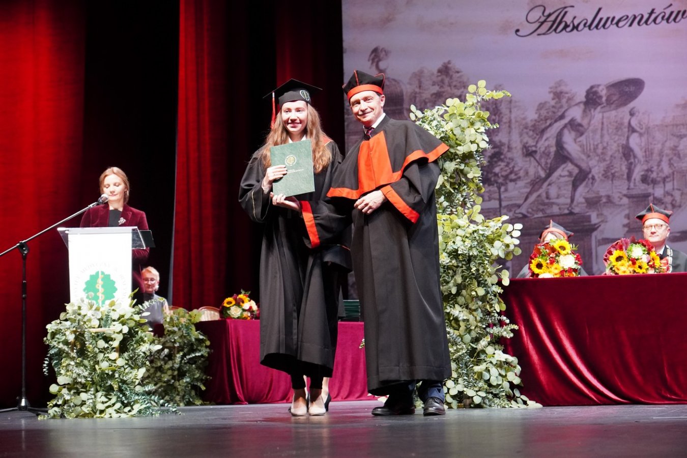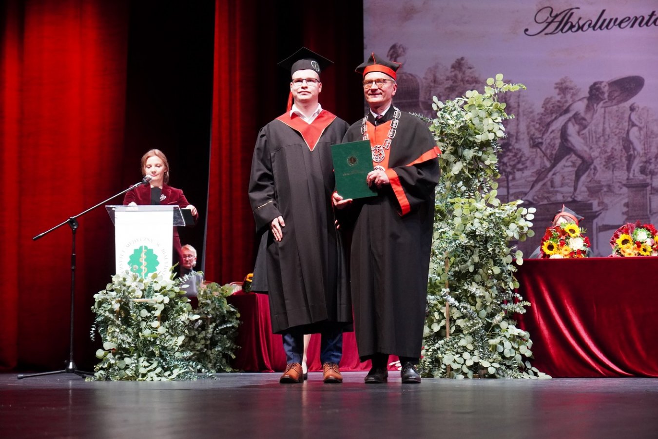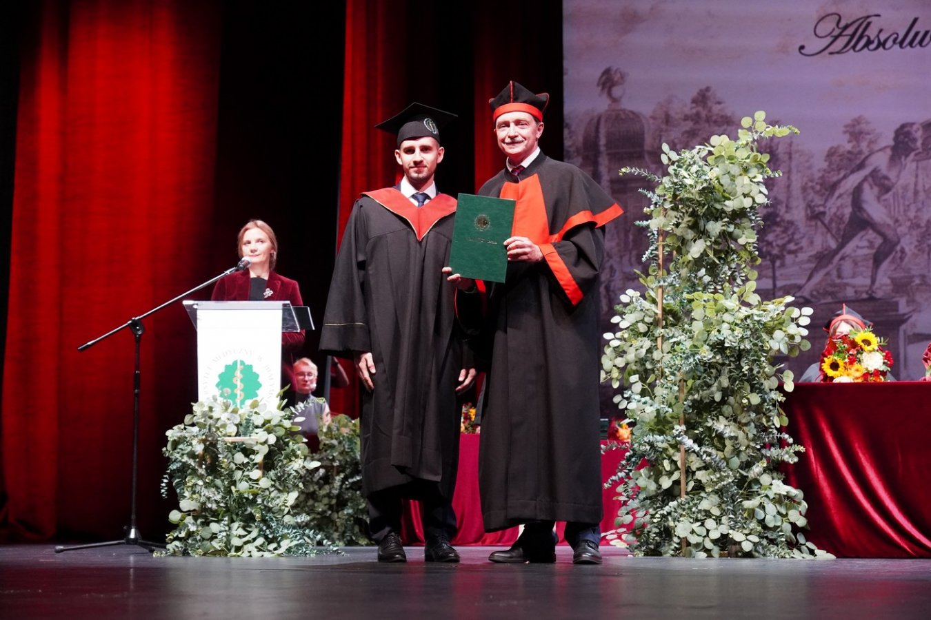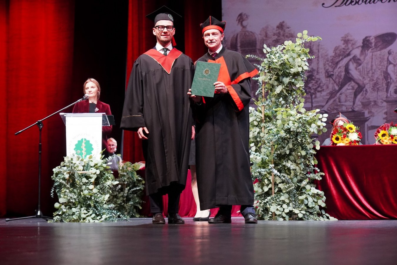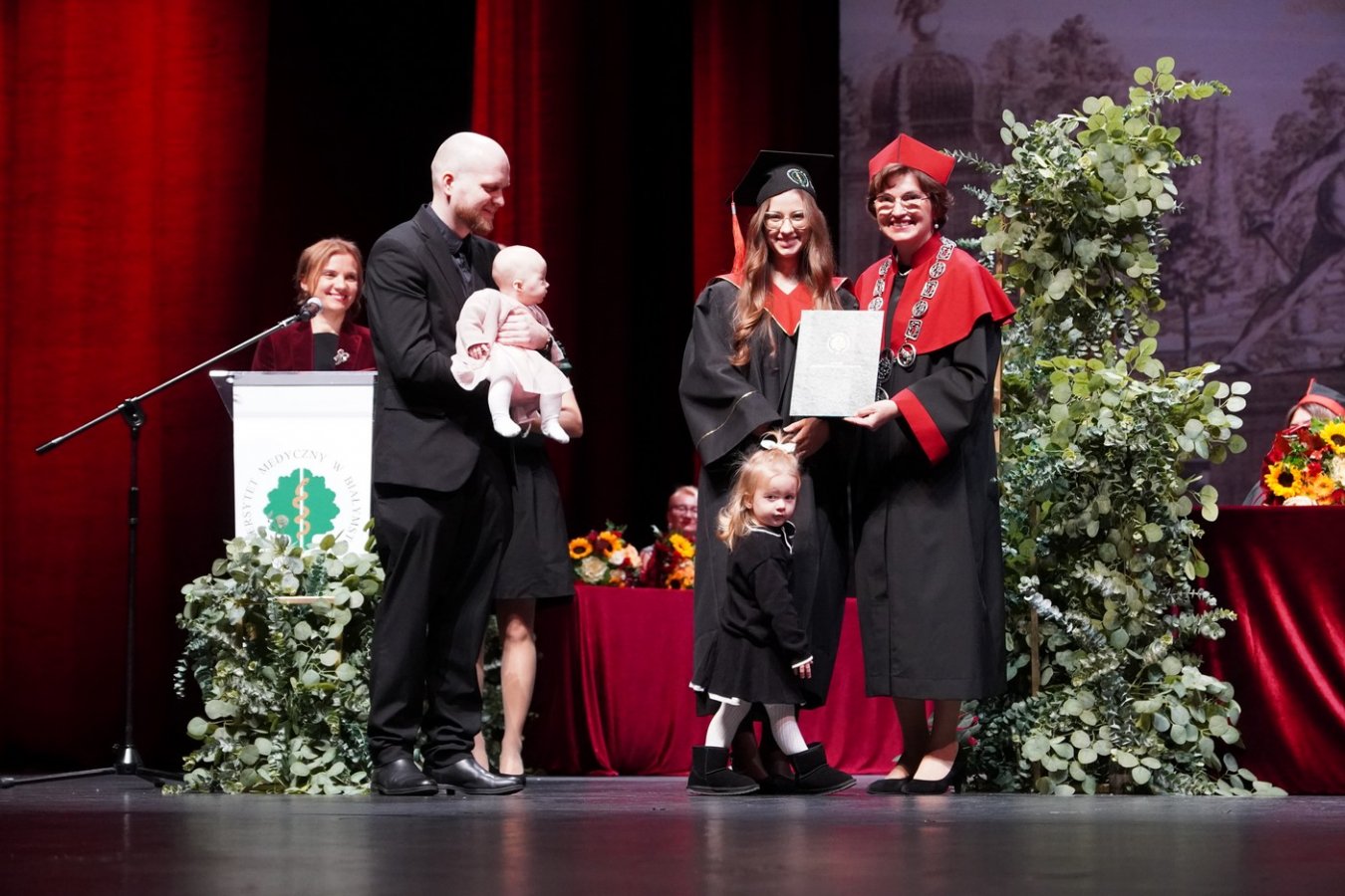 Prorektor ds. Kształcenia prof. Adrian Chabowski podkreślał emocje jakie towarzyszyły podczas studiowania: to był stres, frustracja, elementy związane z zaliczeniami i egzaminami, ale była też ambicja, żeby być lepszym, żeby poznać. I do tego potężny zasób satysfakcji: to ja to zrobiłem, to ja to osiągnąłem. I to zostanie z Wami, bo w Waszej przyszłej pracy będą te same emocje: stres, ambicja do dążenia w kierunku najlepszej diagnostyki, w kierunku najlepszego leczenia. I później to morze satysfakcji: to mój pacjent czuje się lepiej.