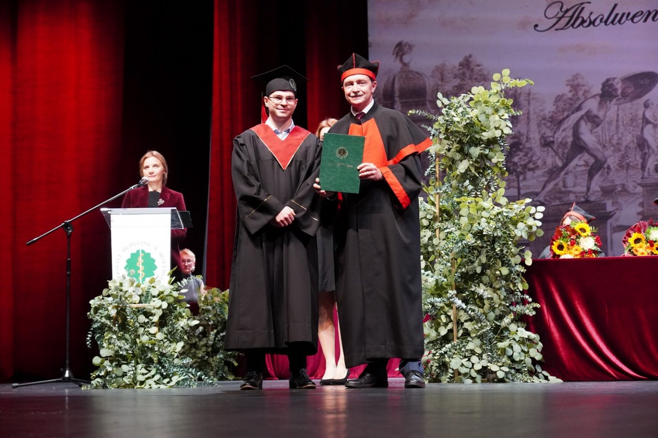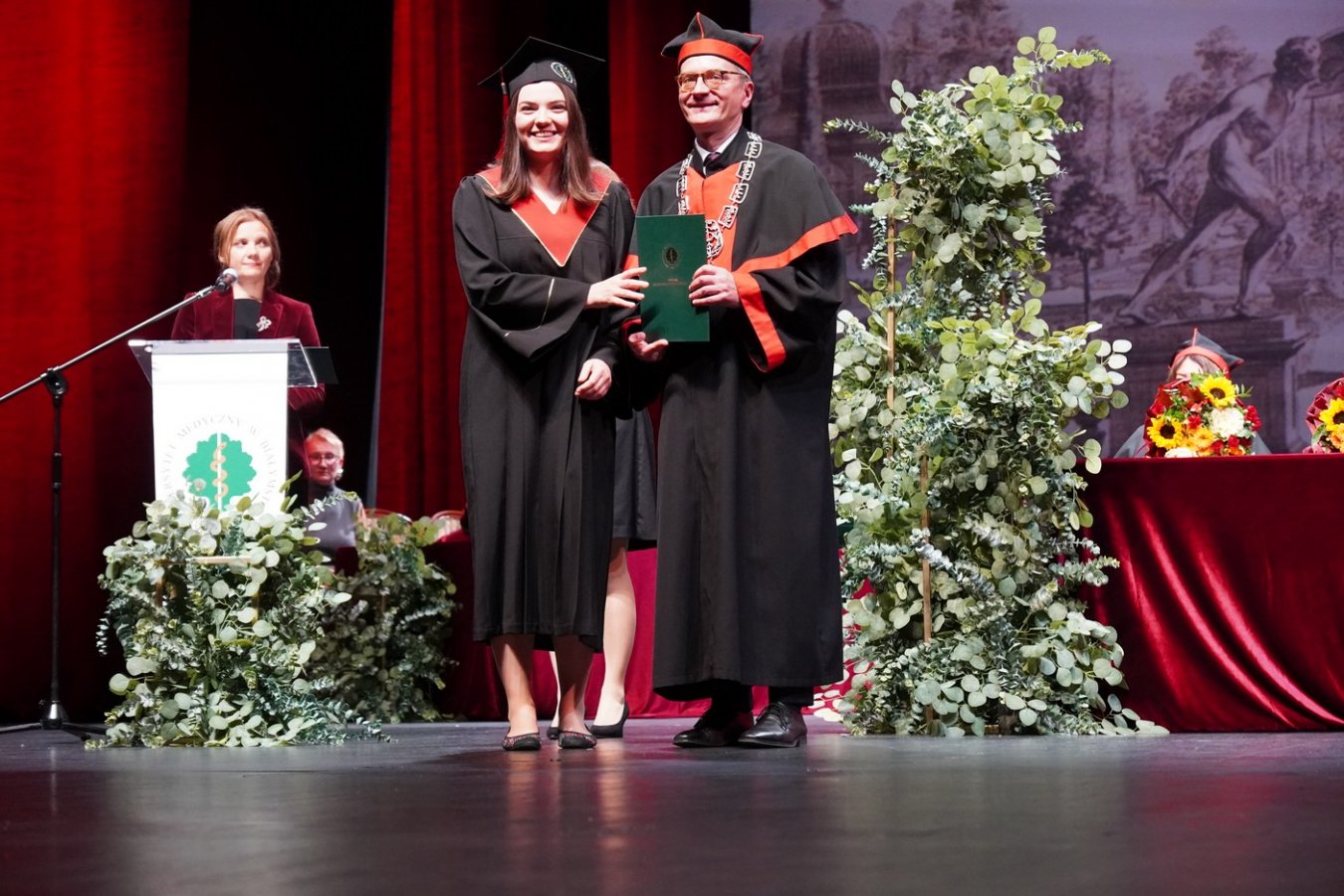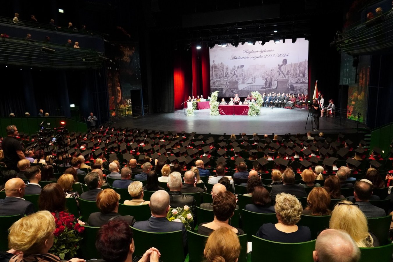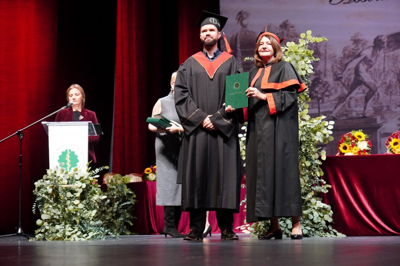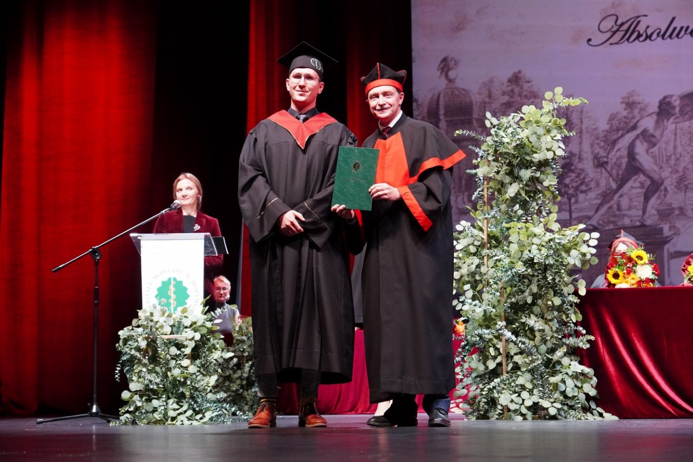 Prorektor ds. Kształcenia prof. Adrian Chabowski podkreślał emocje jakie towarzyszyły podczas studiowania: to był stres, frustracja, elementy związane z zaliczeniami i egzaminami, ale była też ambicja, żeby być lepszym, żeby poznać. I do tego potężny zasób satysfakcji: to ja to zrobiłem, to ja to osiągnąłem. I to zostanie z Wami, bo w Waszej przyszłej pracy będą te same emocje: stres, ambicja do dążenia w kierunku najlepszej diagnostyki, w kierunku najlepszego leczenia. I później to morze satysfakcji: to mój pacjent czuje się lepiej.