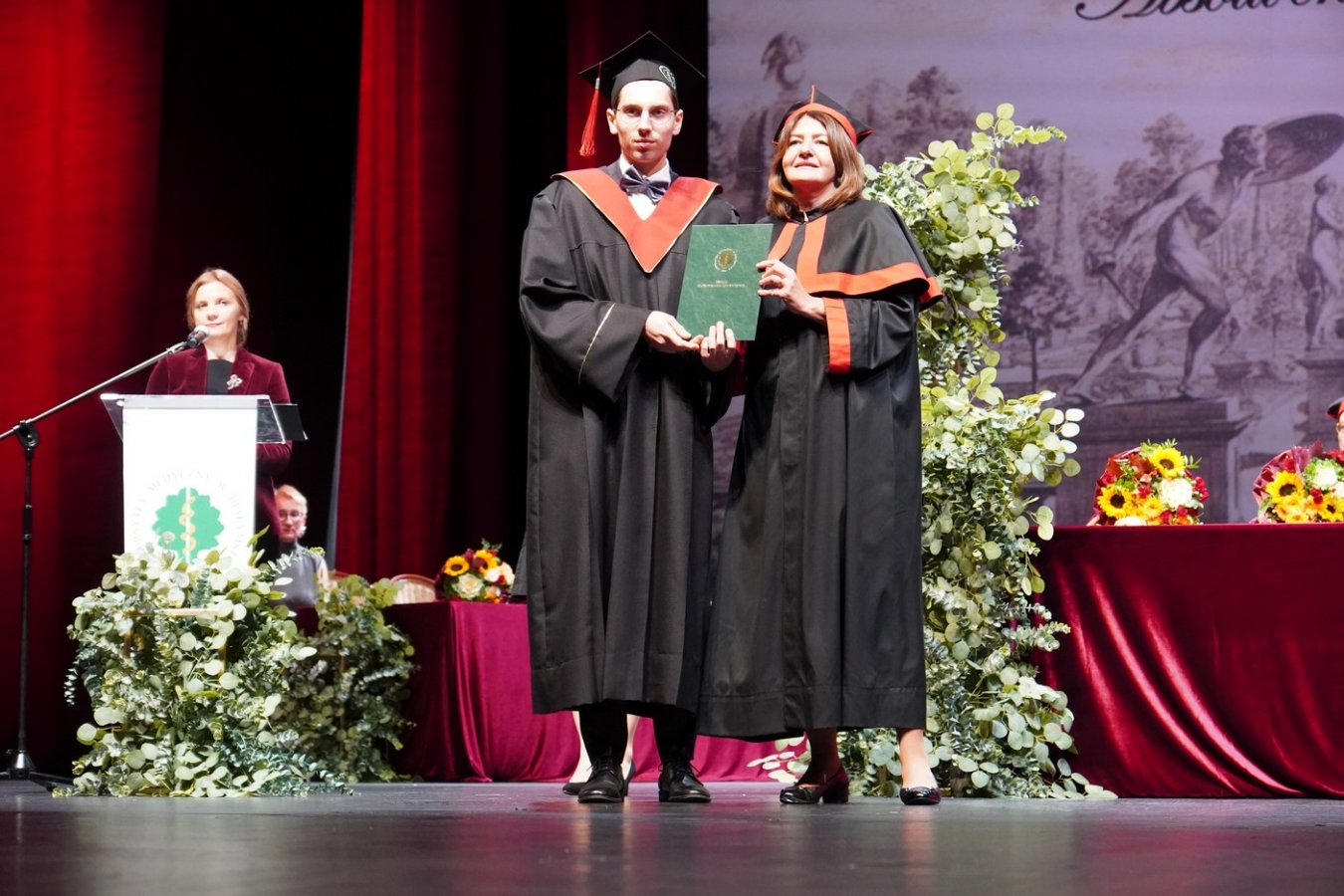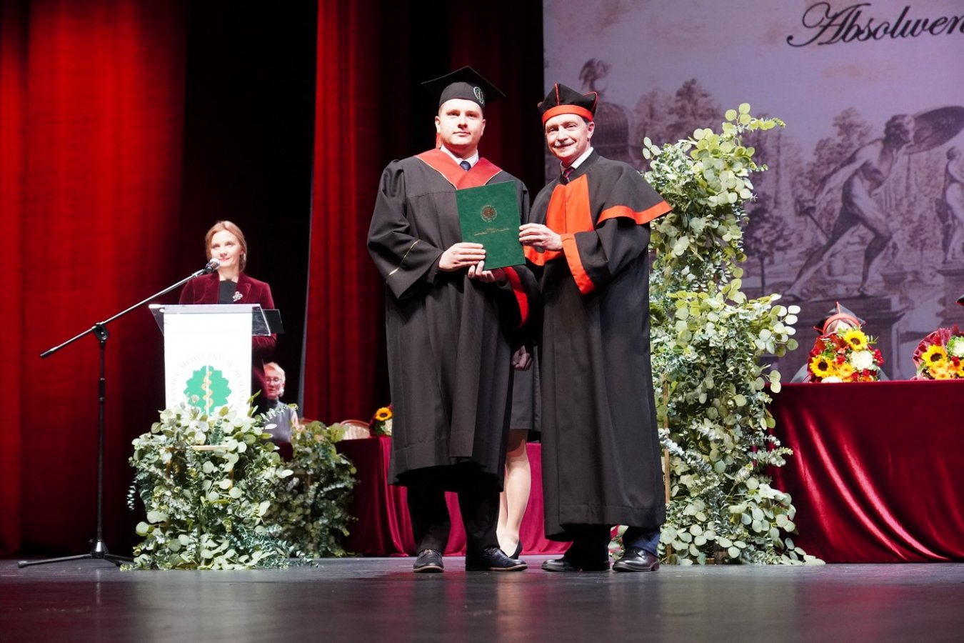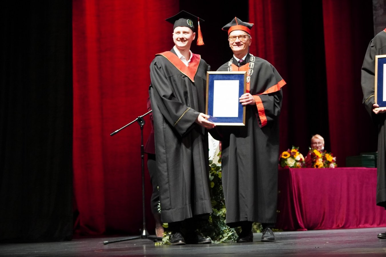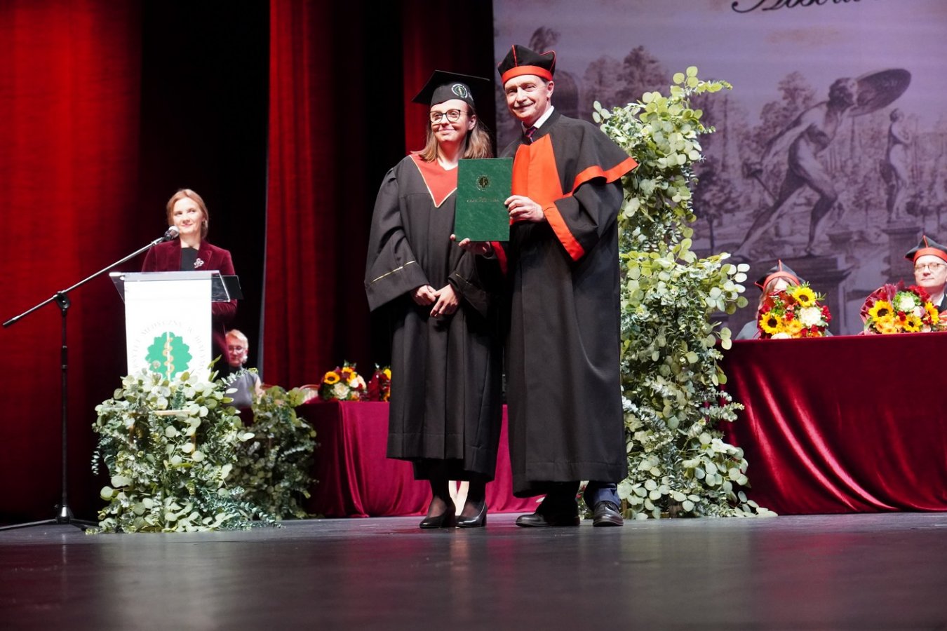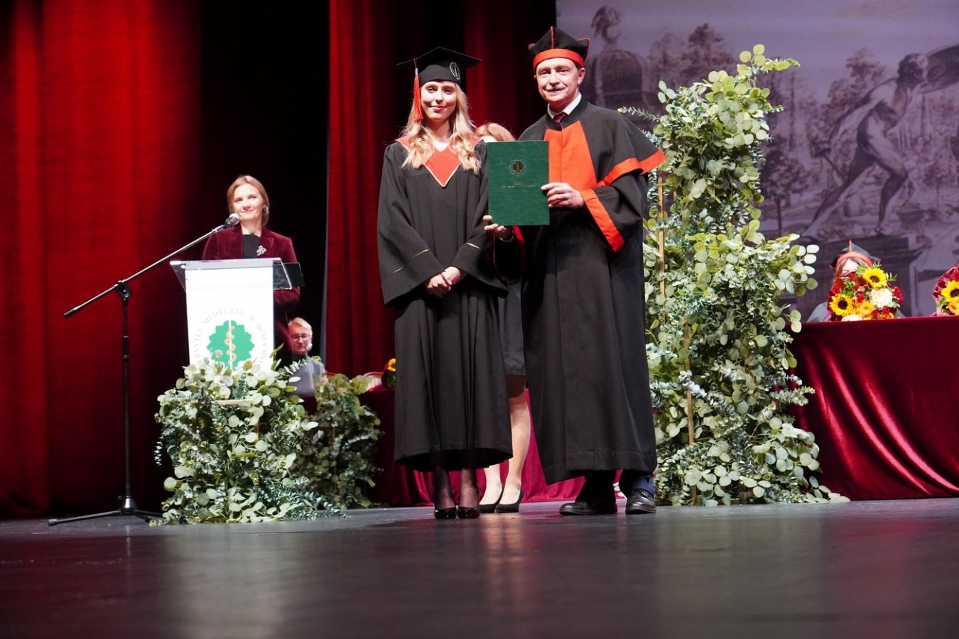 Prorektor ds. Kształcenia prof. Adrian Chabowski podkreślał emocje jakie towarzyszyły podczas studiowania: to był stres, frustracja, elementy związane z zaliczeniami i egzaminami, ale była też ambicja, żeby być lepszym, żeby poznać. I do tego potężny zasób satysfakcji: to ja to zrobiłem, to ja to osiągnąłem. I to zostanie z Wami, bo w Waszej przyszłej pracy będą te same emocje: stres, ambicja do dążenia w kierunku najlepszej diagnostyki, w kierunku najlepszego leczenia. I później to morze satysfakcji: to mój pacjent czuje się lepiej.