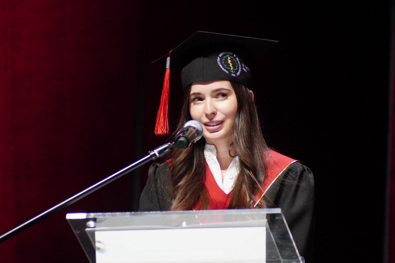 Przewodnicząca Samorządu Studenckiego Joanna Kruszyńska zwracała się do starszych koleżanek i kolegów: Koniec tego etapu, to początek czegoś nowego, początek przyszłości, o której marzyliście, którą sobie zaplanowaliście. Wasza ciężka praca, determinacja i zaangażowanie przełożyły się na bardzo wysokie wyniki lekarskiego egzaminu końcowego, czego Wam serdecznie gratuluję