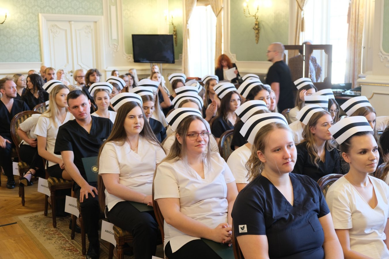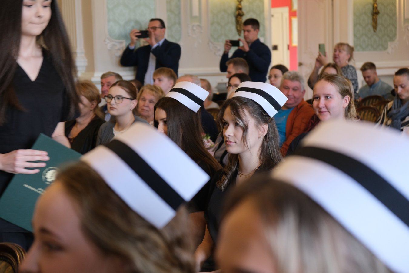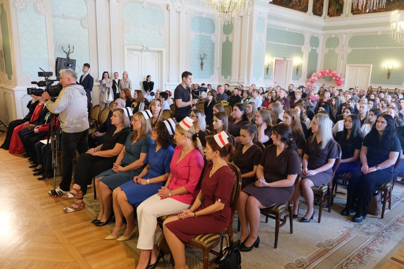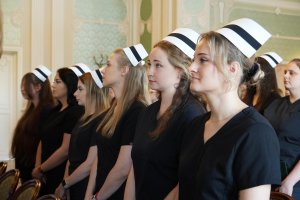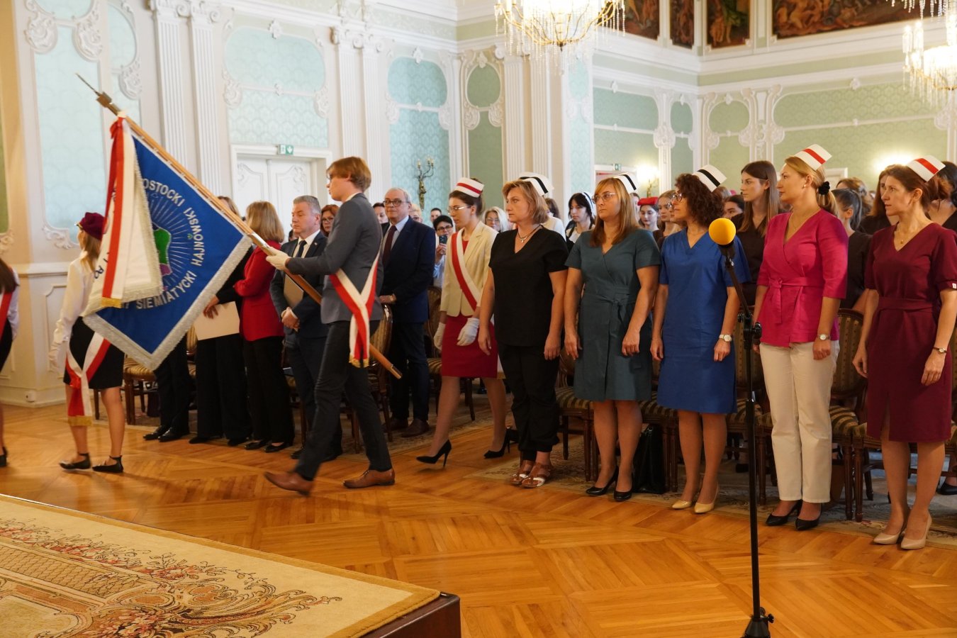 115 pielęgniarek i 15 pielęgniarzy oraz 35 położnych odebrało w tym roku dyplom ukończenia studiów pierwszego stopnia na Uniwersytecie Medycznym w Białymstoku. W poniedziałek, 21 października 2024 r., absolwenci obu kierunków - pielęgniarstwa i położnictwa - wzięli udział w ceremonii wręczenia dyplomów, a także w symbolicznym „czepkowaniu”.
