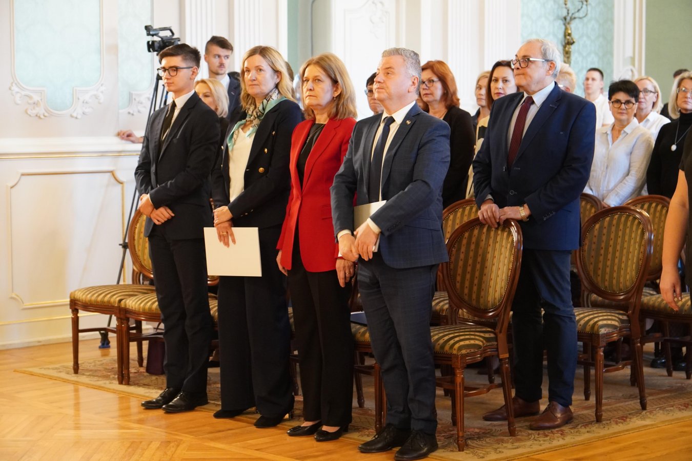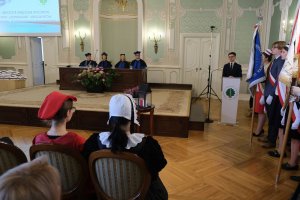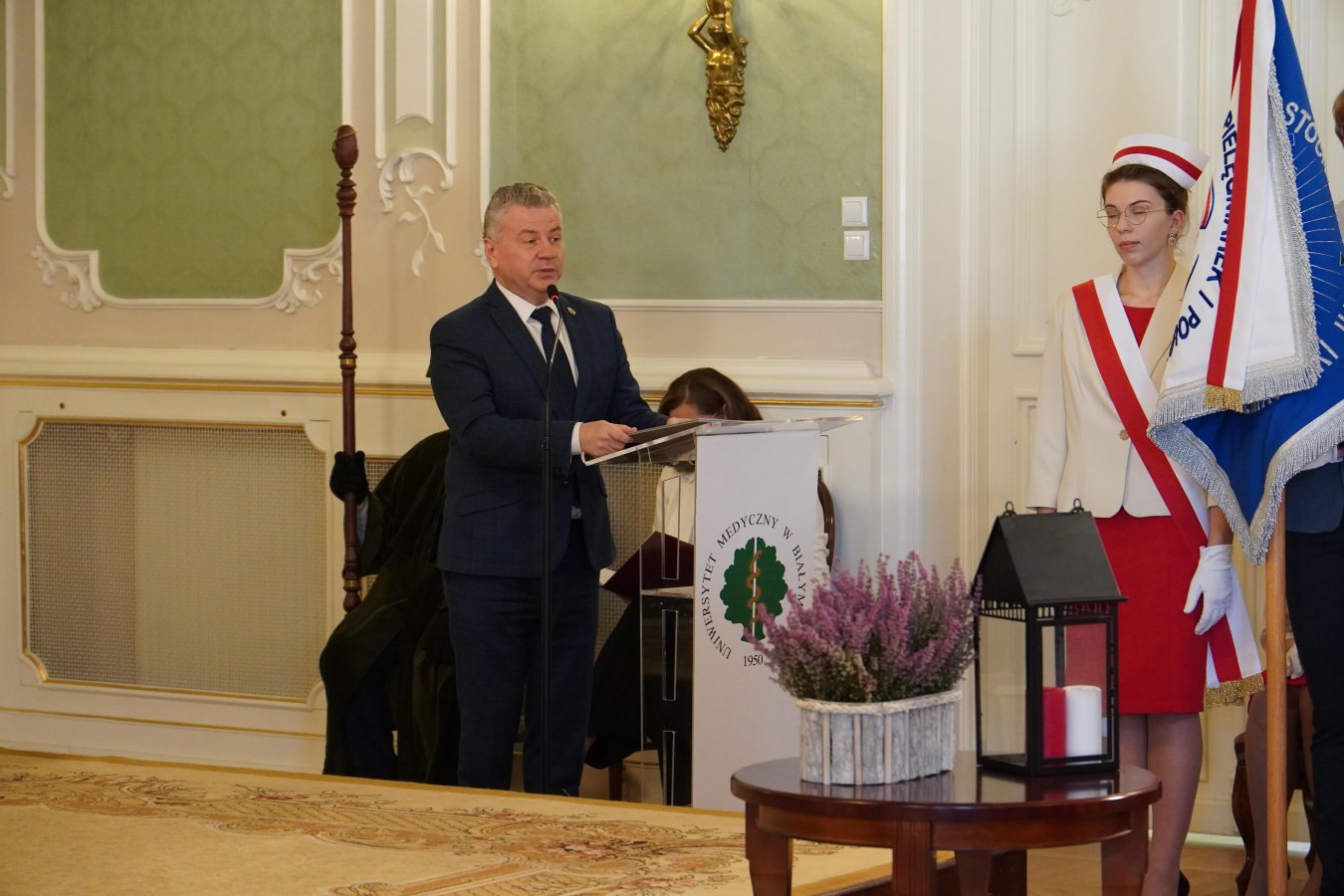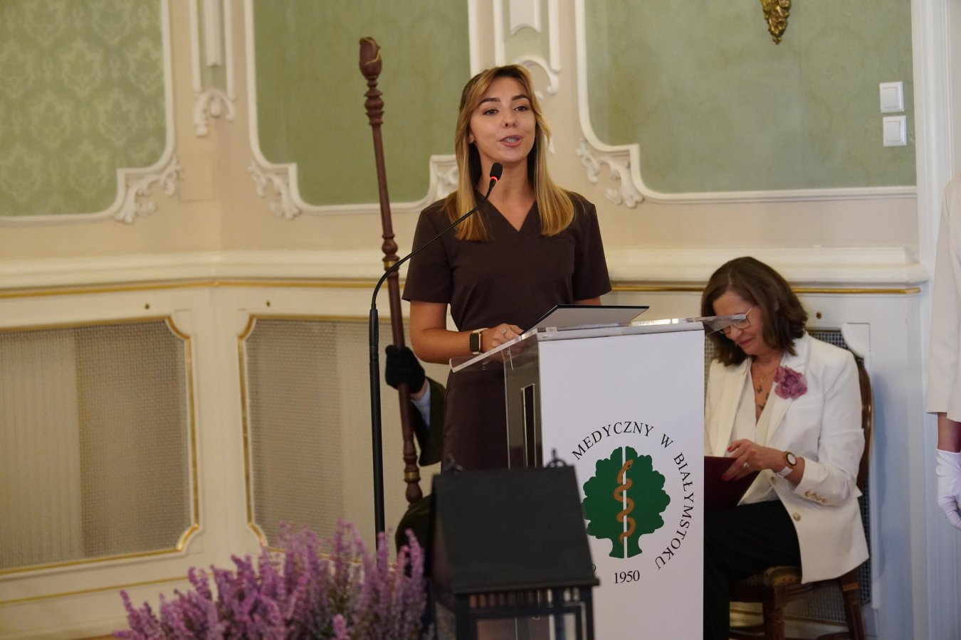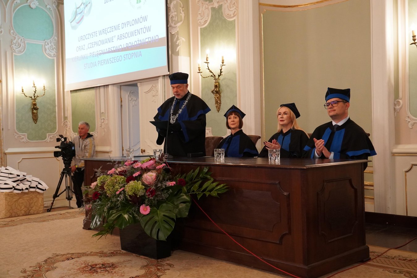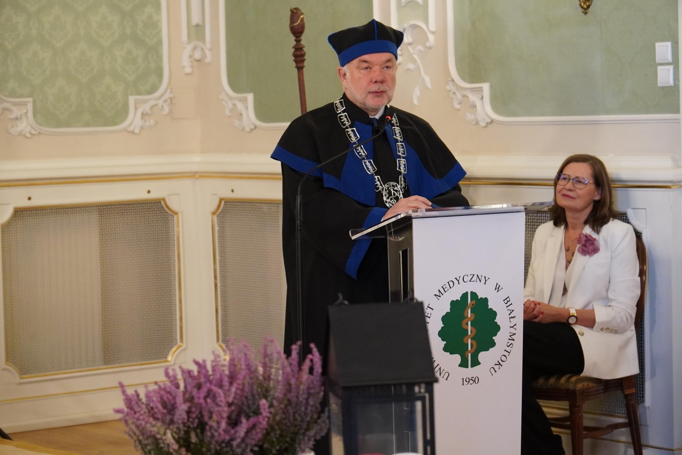 Głos zabrali także zaproszeni goście: dr Andrzej Tytuła - Wiceprezes Naczelnej Rady Pielęgniarek i Położnych, dr Beata Olejnik - Przewodnicząca Okręgowej Rady Pielęgniarek i Położnych w Białymstoku, Sebastian Bobryk - Wiceprzewodniczący Samorządu Studentów oraz przedstawicielki absolwentów: Weronika Rolewska (pielęgniarstwo) i Aleksandra Bowtruczuk (położnictwo).
