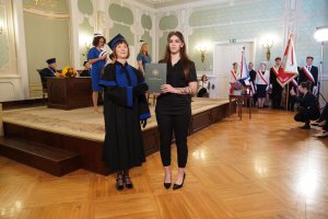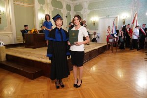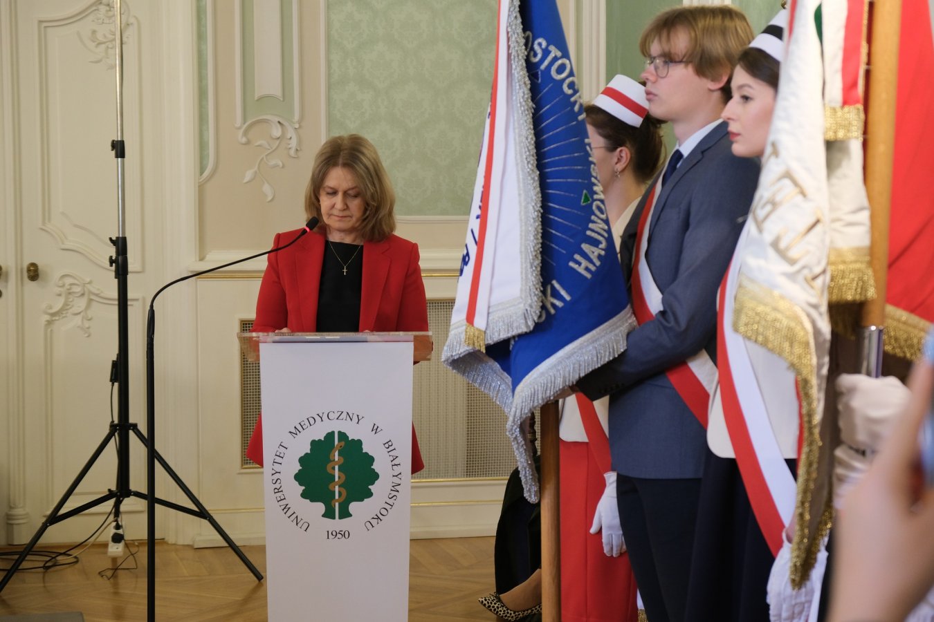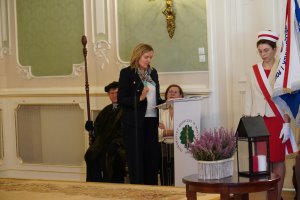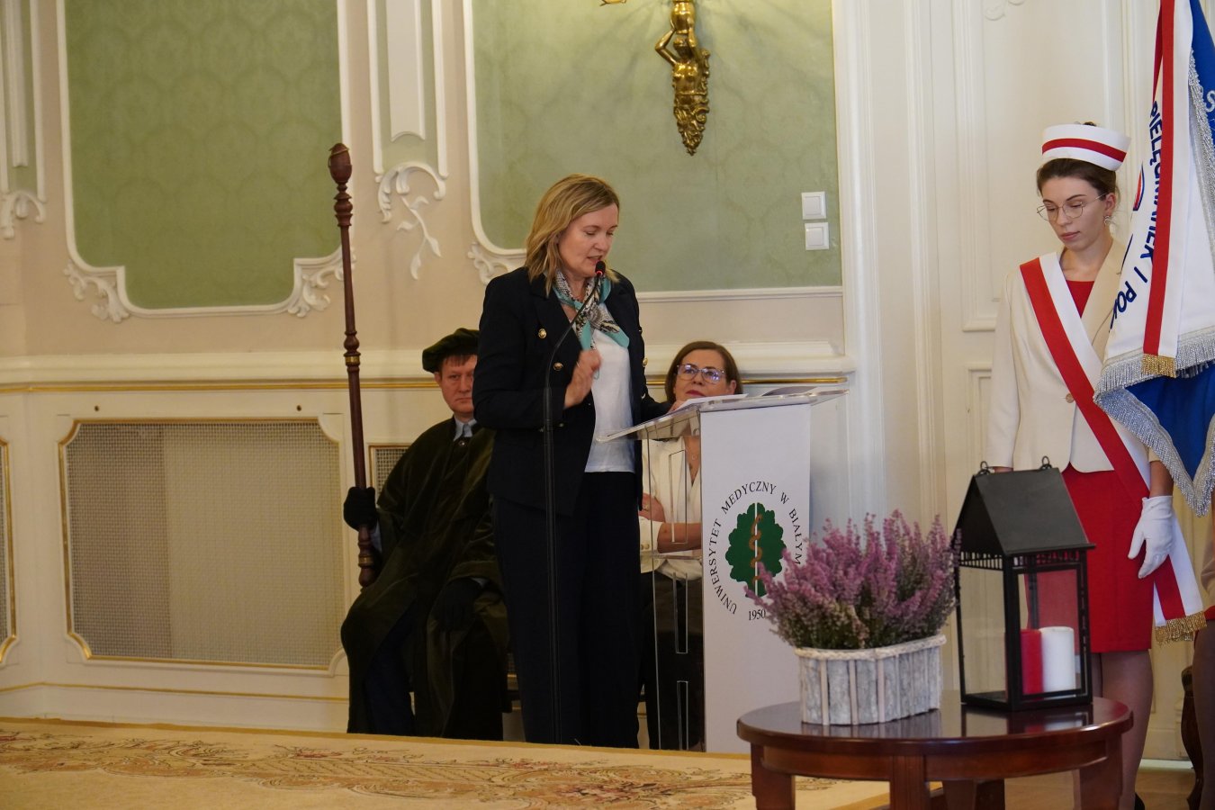 Słowa rektora UMB, skierowane do absolwentów odczytała prof. Katarzyna Socha, Prorektor ds. Rozwoju i Współpracy z Otoczeniem: Pamiętajcie, że UMB, to zawsze będzie Wasz drugi dom. Życzę Wam nieustającej chęci do rozwoju osobistego, wytrwałości i realizacji wyznaczonych celów.