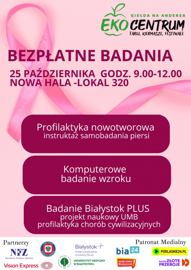 Pracownicy Ośrodka Badań Populacyjnych Uniwersytetu Medycznego w Białymstoku zapraszają białostoczan na bezpłatne badania – w piątek, 25 października 2024 r., od 9:00 do 12:0 na terenie Giełdy na Andersa EcoCentrum.