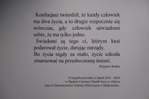 „Życia nigdy dość” to projekt artystyczny, w którym z bardzo bliska pokazana została transplantacja. Wernisaż wystawy odbył się w piątek (25 października) w Galerii im. Sleńdzińskich w Białymstoku.