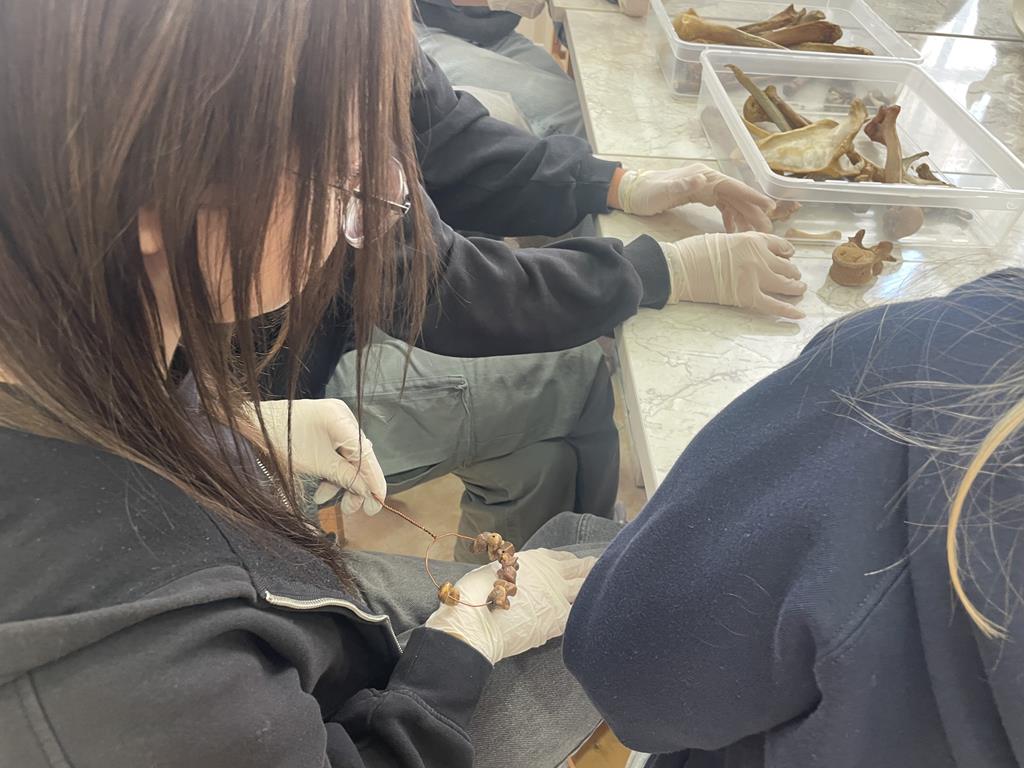 Podczas zajęć uczniowie zapoznali się z budową oraz funkcjami poszczególnych kości, a także ich znaczeniem w organizmie. W trakcie obserwacji i pod okiem pani mgr Justyny Klimek poznali strukturę włókien mięśniowych okalających kości, co pozwoliło im lepiej zrozumieć interakcje między układem kostnym a mięśniowym.