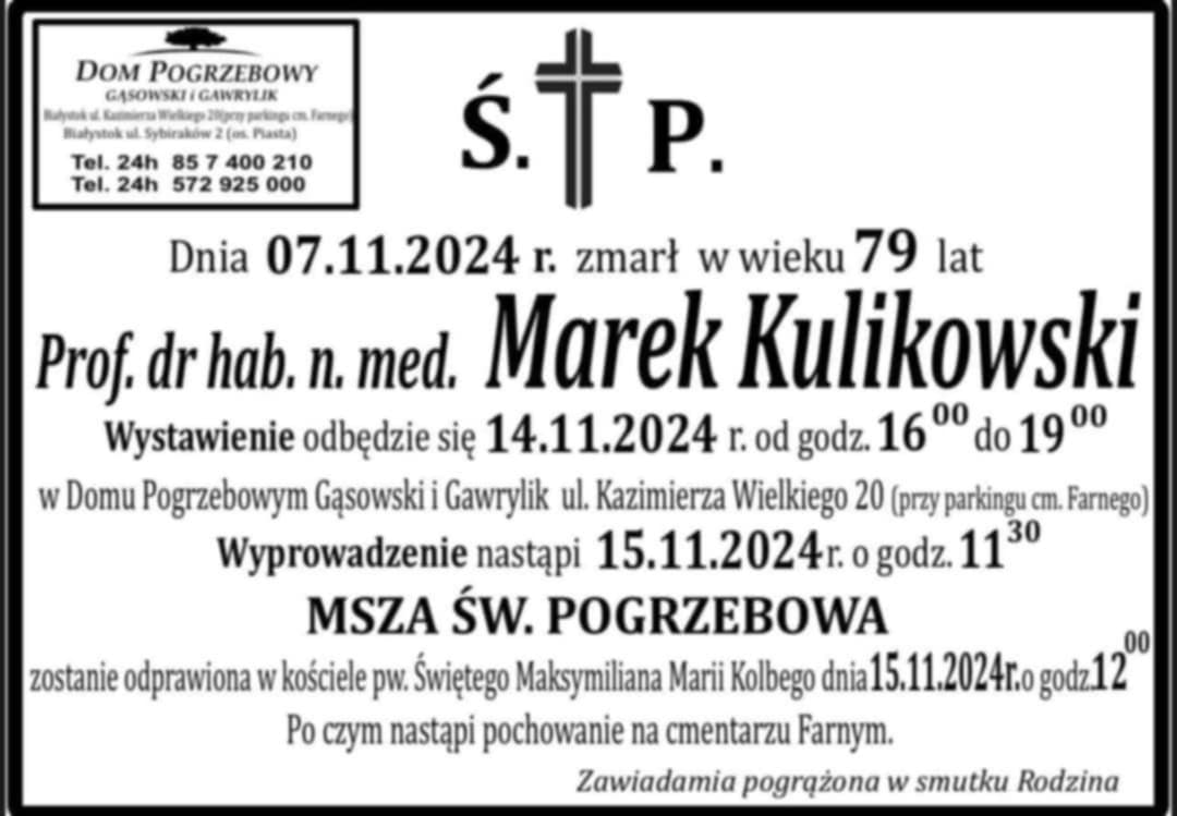W Zmarłym żegnamy wspaniałego lekarza, szanowanego nauczyciela akademickiego, wychowawcę młodzieży.