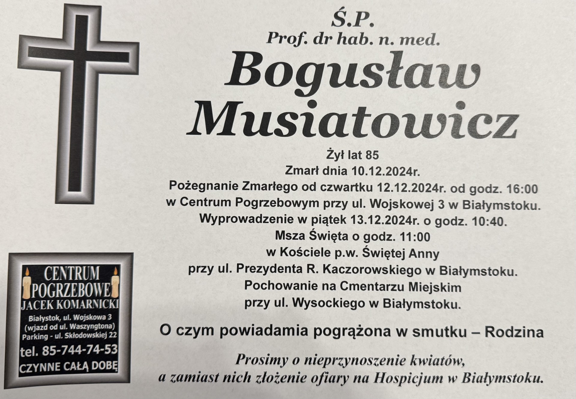 prof. dr hab. Bogusław Kazimierz Musiatowicz