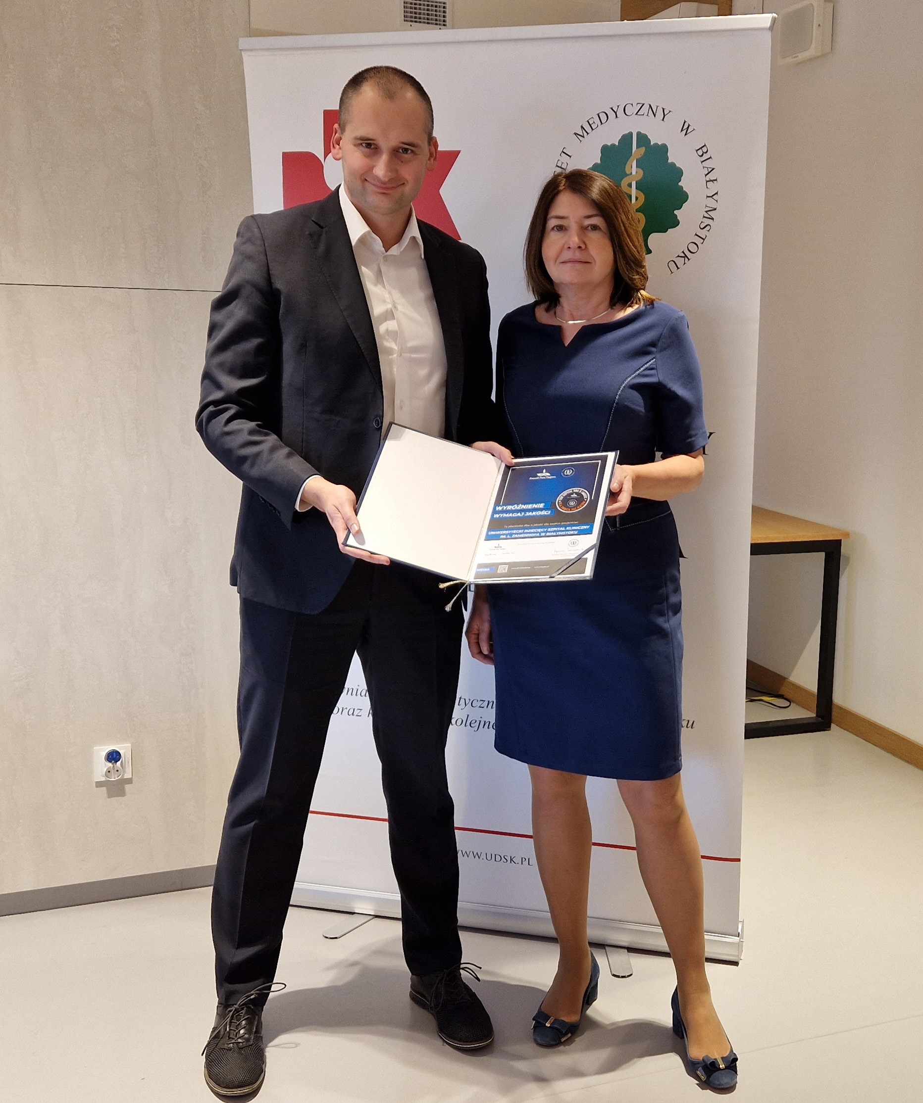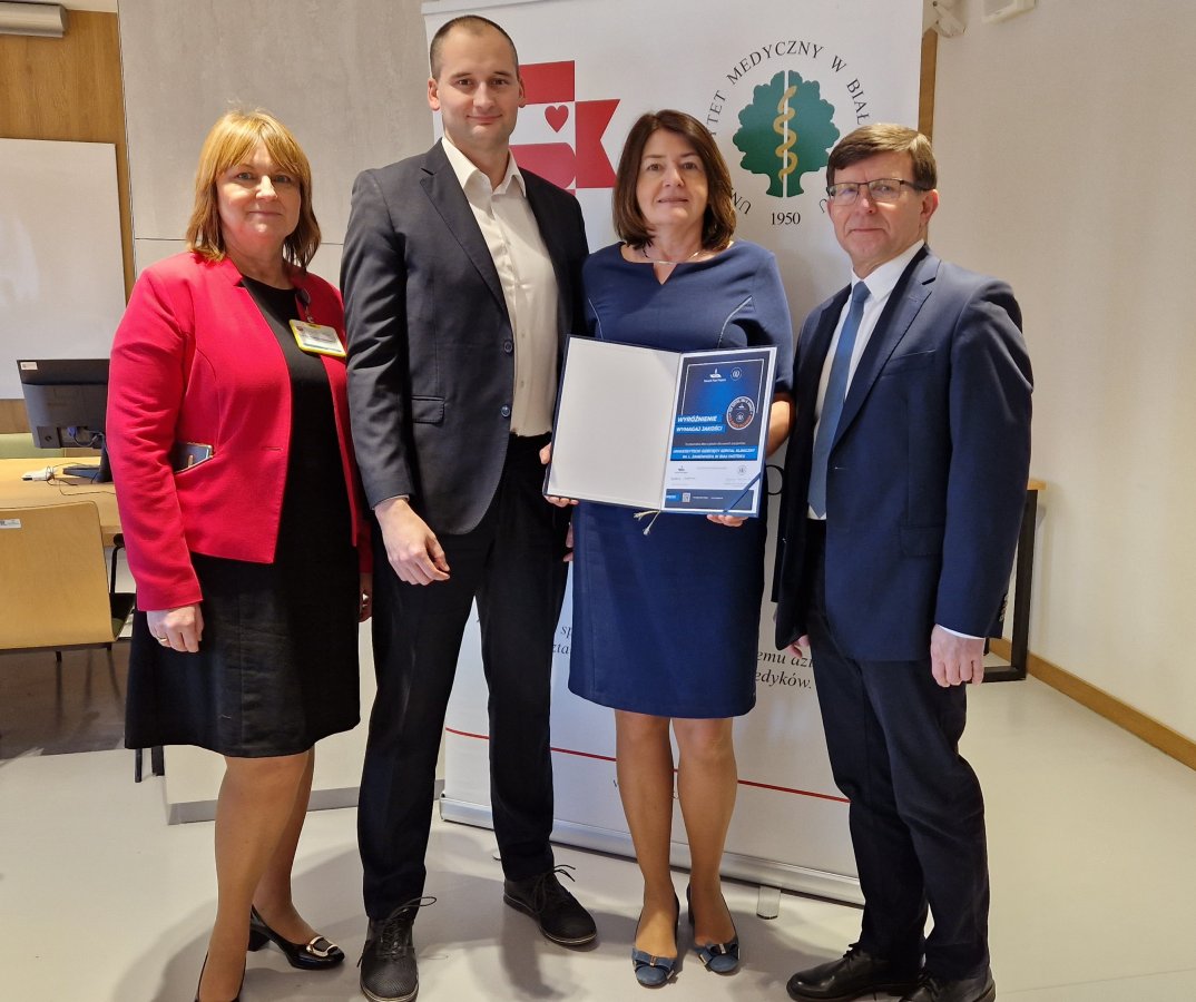 „Wymagaj jakości” to niezwykłe wyróżnienie, które dziś ( 28 stycznia 2025 r.) z rąk Jakuba Adamskiego, Dyrektora Departamentu Współpracy w Biurze Praw Rzecznika Pacjenta otrzymał Uniwersytecki Dziecięcy Szpital Kliniczny w Białymstoku. Certyfikat to przede wszystkim potwierdzenie najwyższych standardów opieki medycznej, które spełnia szpital i ukoronowanie działań na rzecz podnoszenia jakości, co potwierdził rygorystyczny proces przyznawania akredytacji.