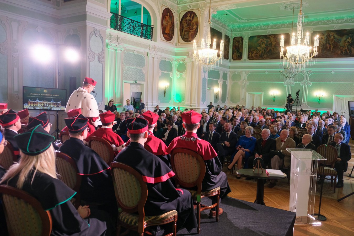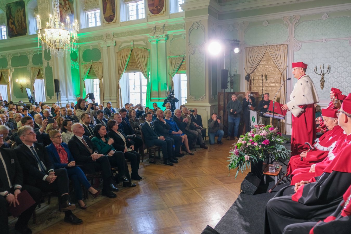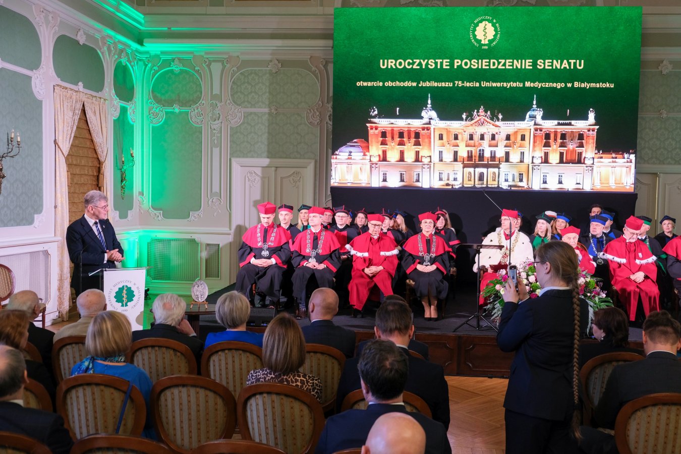 Do życzeń i gratulacji dołączył także Wicemarszałek Senatu RP, Maciej Żywno, podkreślając gigantyczny trud, który włożyli pierwsi pracownicy uczelni w odbudowanie Pałacu Branickich i powołanie Akademii Medycznej, dziś Uniwersytetu Medycznego, a także rolę, którą w rozwoju uczelni pełnią obecne władze.