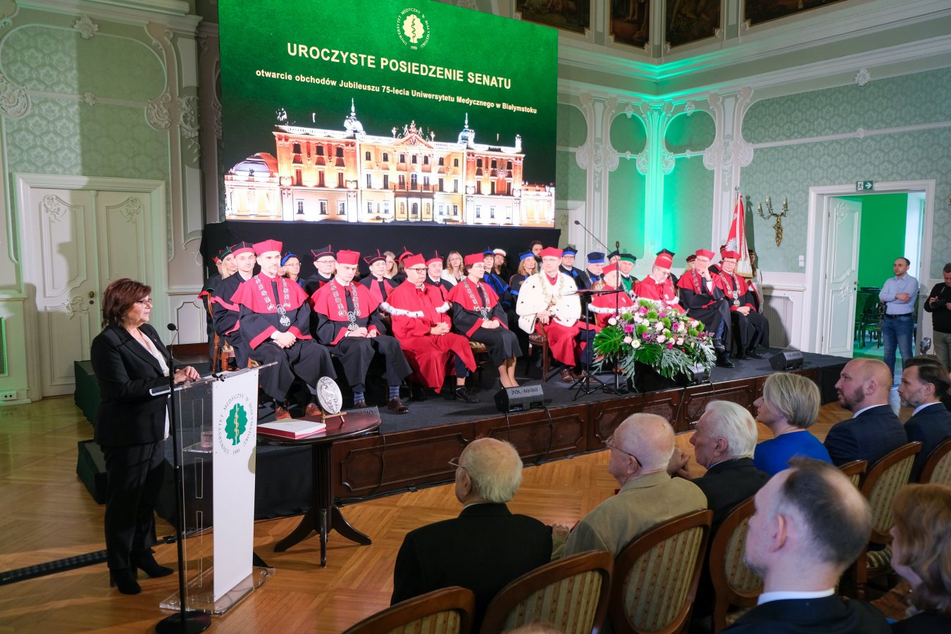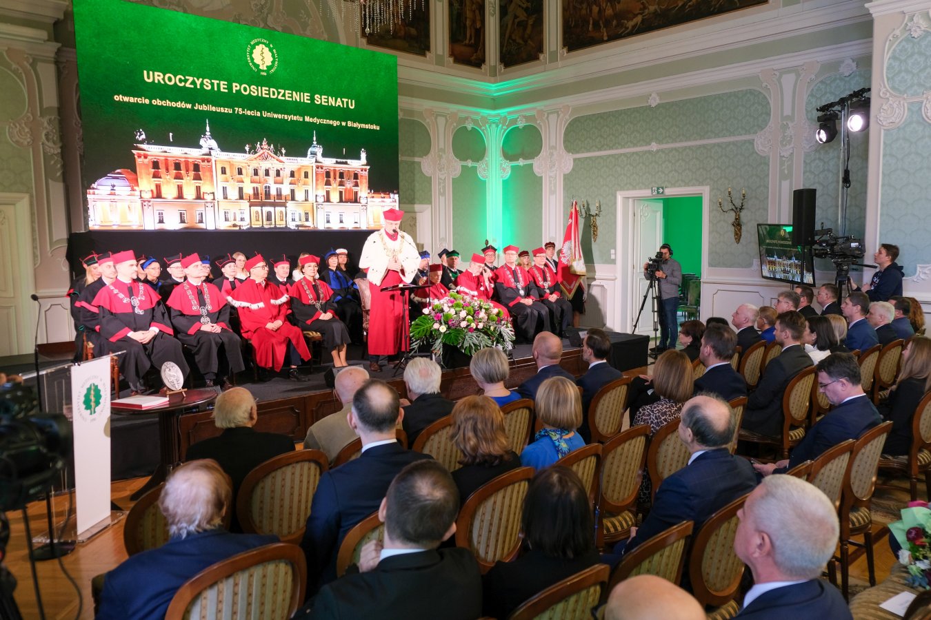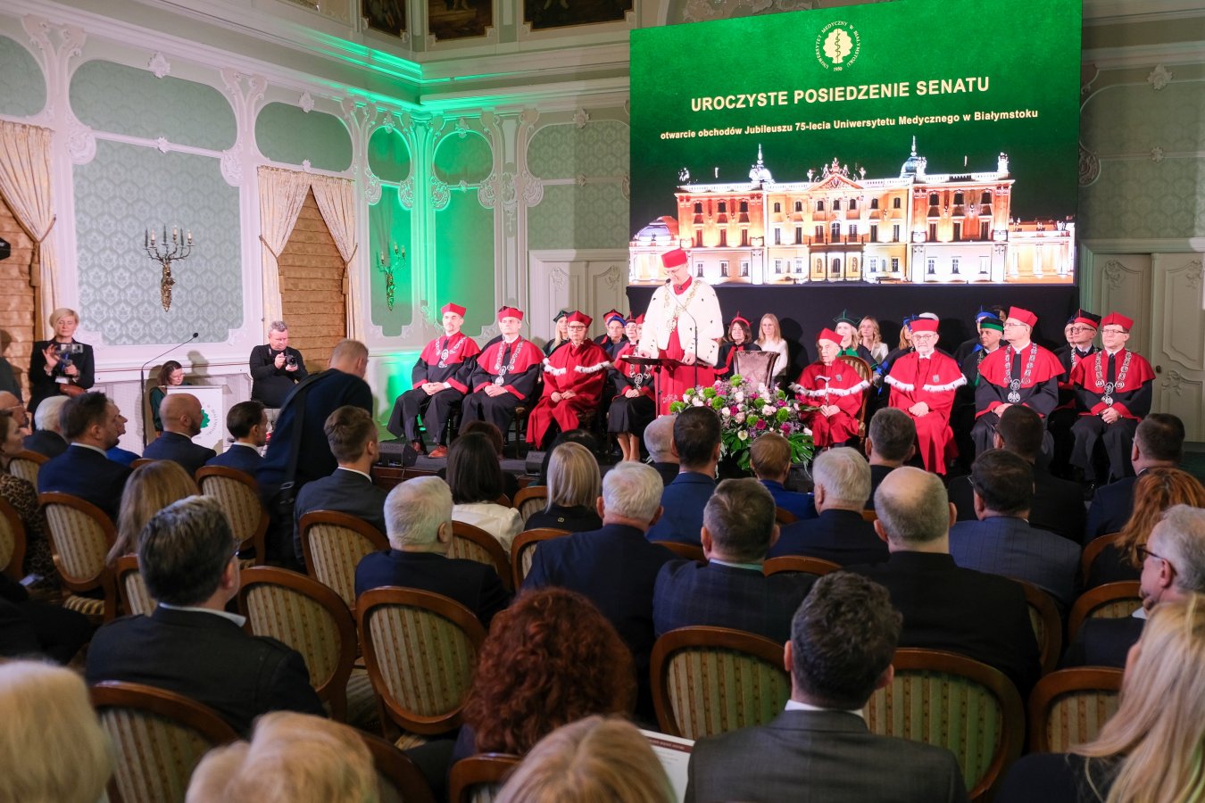 W Auli Magna Pałacu Branickich odbyło się uroczyste posiedzenie Senatu Uczelni, w którym uczestniczyli pierwsi absolwenci ówczesnej Akademii Lekarskiej: prof. Zbigniew Puchalski - absolwent drugiego rocznika (Rektor Uczelni w latach 1987-1990 i 1999-2002), prof. Stanisław Chodynicki (rocznik 1951), oraz doktor Józef Krętowski (rocznik 1952). Dr Teresa Kurowska (rocznik 1950) oraz prof. Ida Kinalska (rocznik 1952, uhonorowana tytułem doktor honoris causa UMB) dołączyły do wydarzenia wirtualnie, dzięki prowadzonej transmisji uroczystości.
